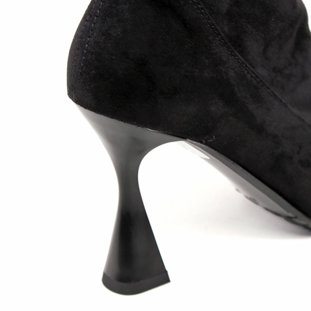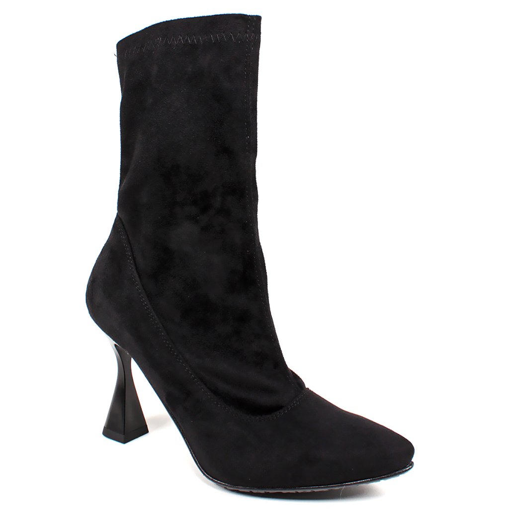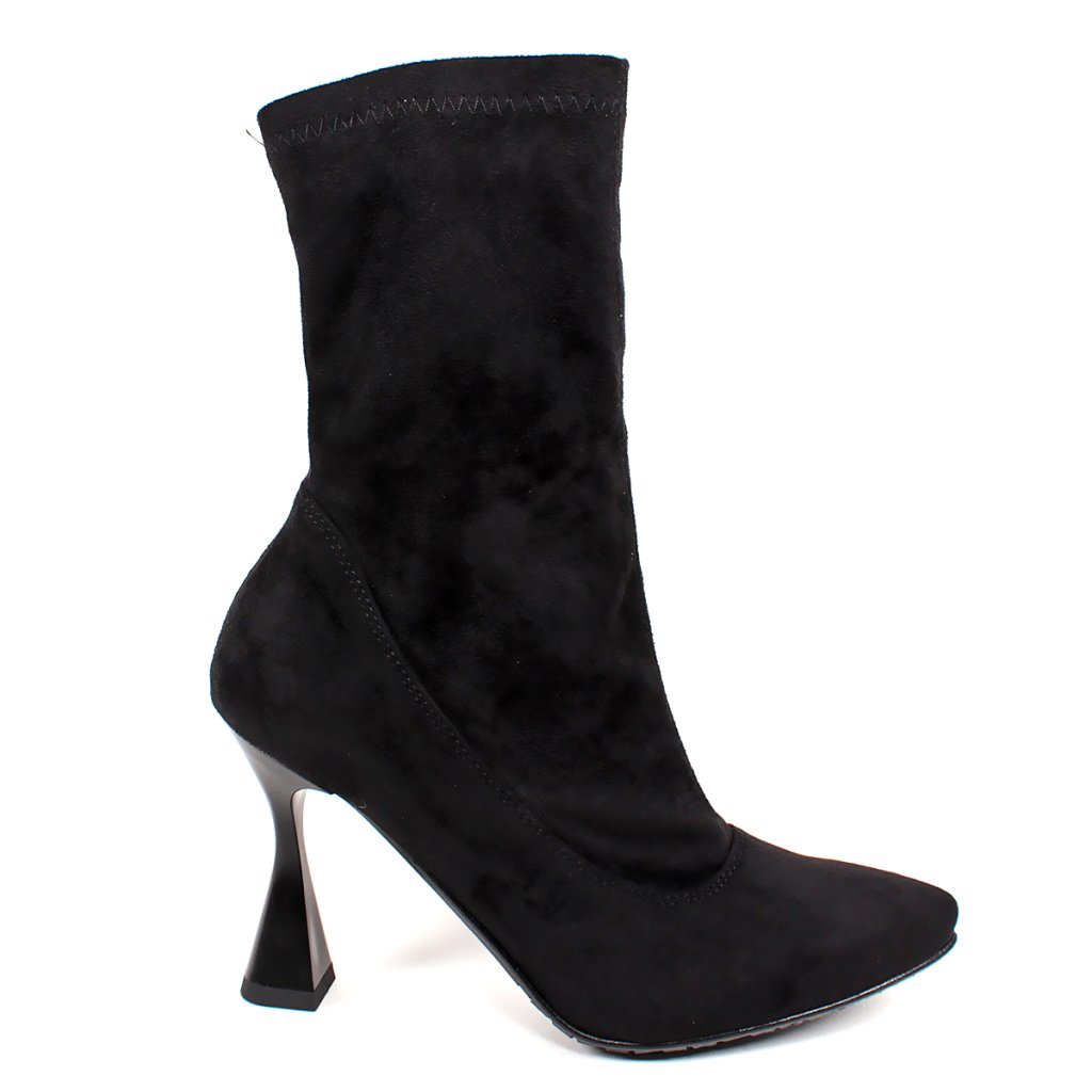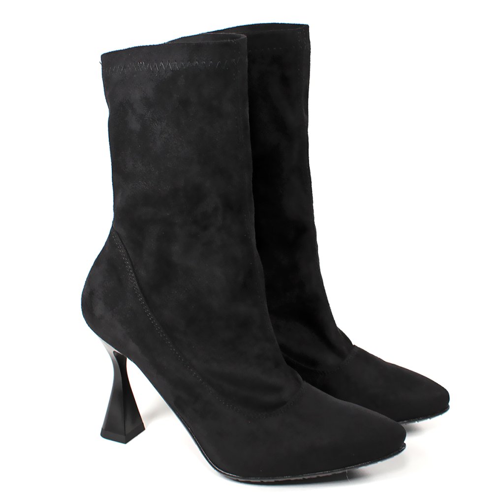 Elegantné členkové čižmičky zo semišovej kože na štýlovom opätku, so zipsom.