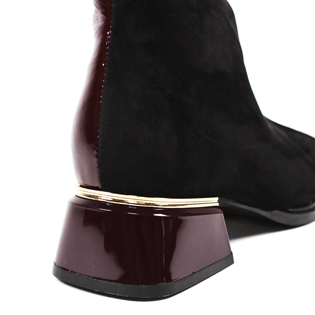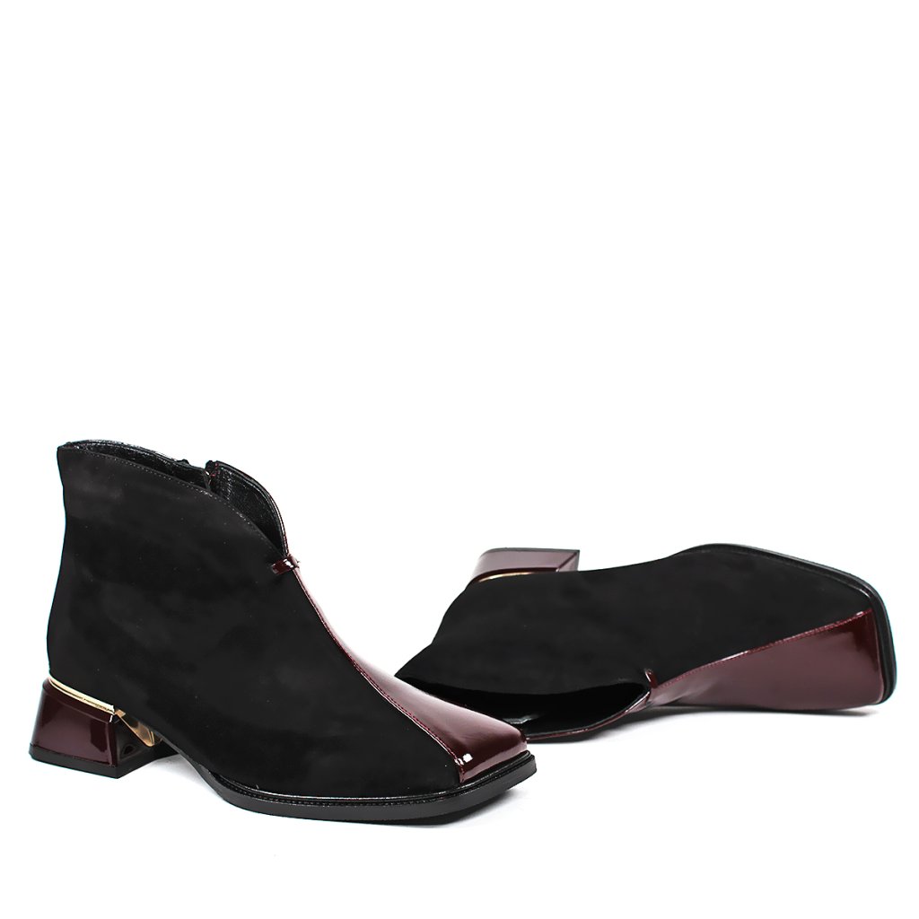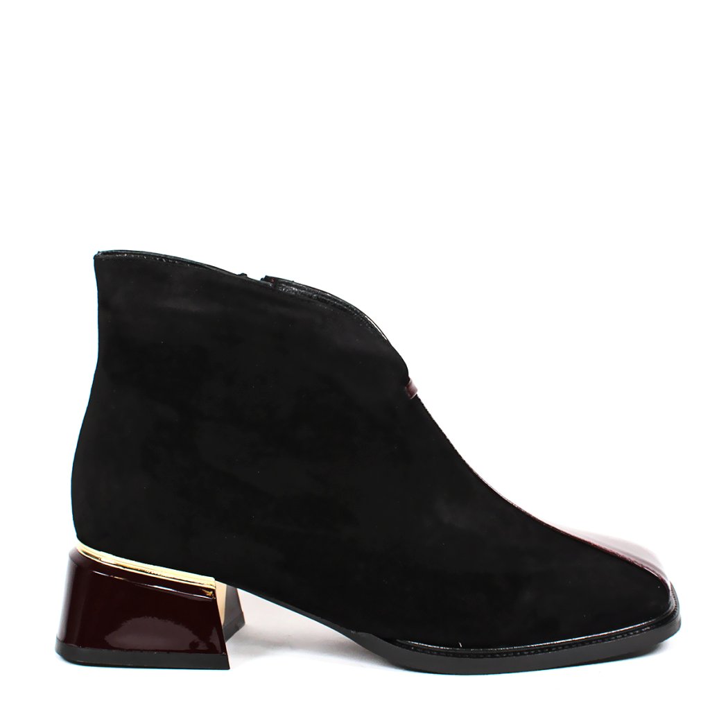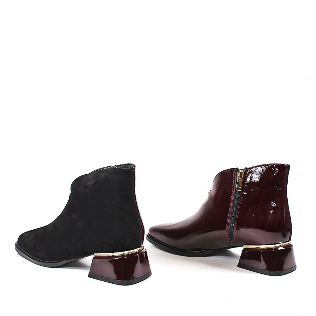 Objavte dokonalú rovnováhu medzi štýlom a komfortom s touto členkovou obuvou, ktorá spája dve rôzne textúry. Kombinácia lesklej lakovanej kože a jemného semišu vytvára moderný a nezameniteľný dizajn.
