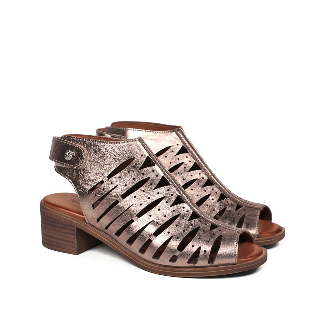 Objavte letnú obuv v novom, luxusnom svetle. Táto verzia obľúbeného modelu od Secretshoes v pútavom metalickom odtieni prinesie do vášho šatníka eleganciu a sofistikovanosť. Unikátna kombinácia členkového strihu a vzdušných prvkov robí z týchto sandálov ideálnu voľbu pre modernú ženu.