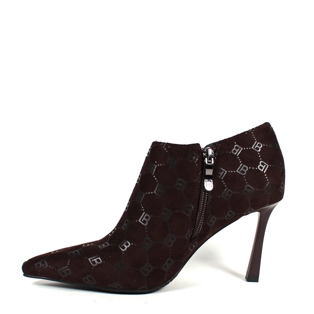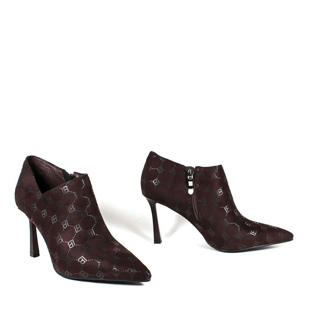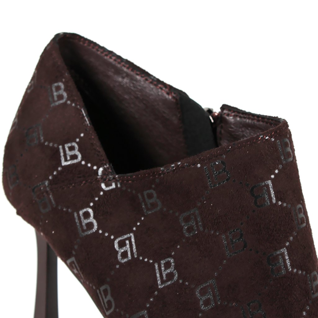 Predstavujeme členkové topánky Laura Biagiotti, ktoré sa vyznačujú sofistikovaným dizajnom na vysokom podpätku zdobeným monogramom LB. Praktický bočný zips zabezpečuje jednoduché obúvanie, čo z nich robí dokonalý doplnok do vašej garderóby pre chic a upravený vzhľad.