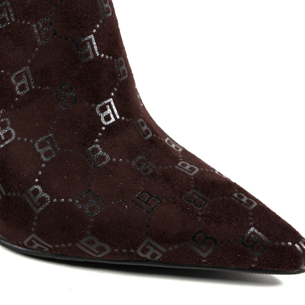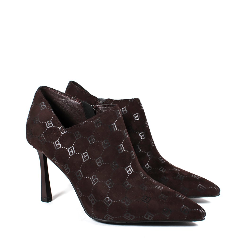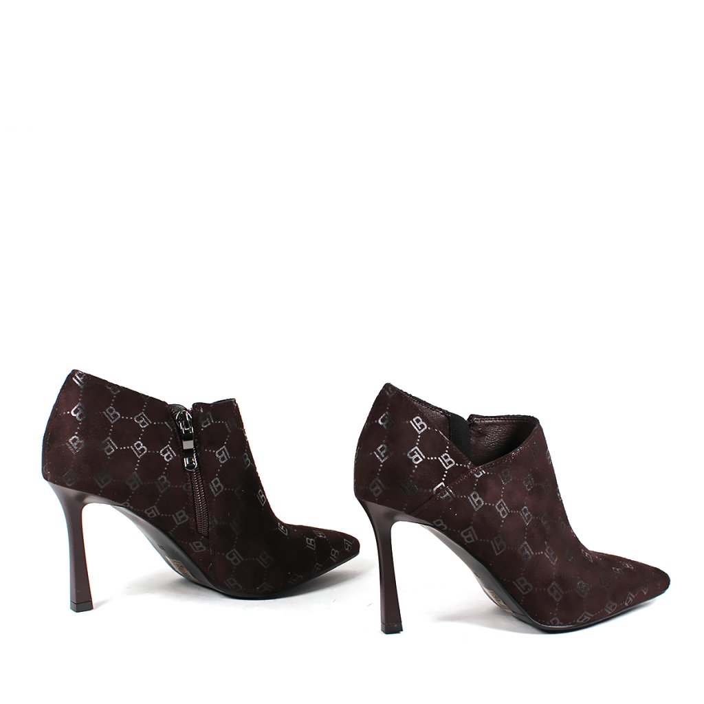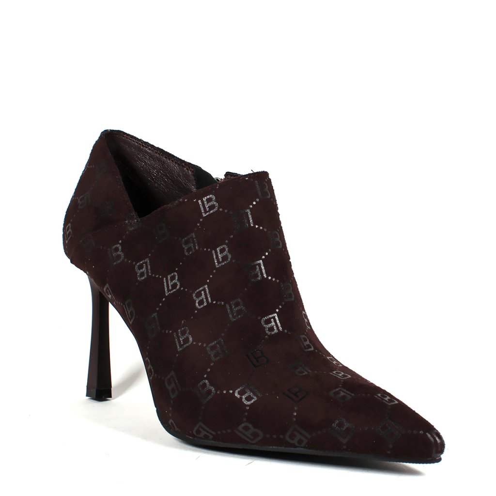 Predstavujeme členkové topánky Laura Biagiotti, ktoré sa vyznačujú sofistikovaným dizajnom na vysokom podpätku zdobeným monogramom LB. Praktický bočný zips zabezpečuje jednoduché obúvanie, čo z nich robí dokonalý doplnok do vašej garderóby pre chic a upravený vzhľad.