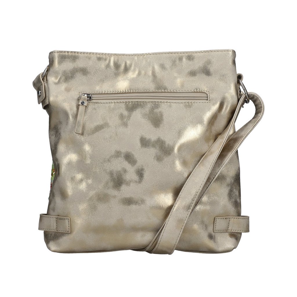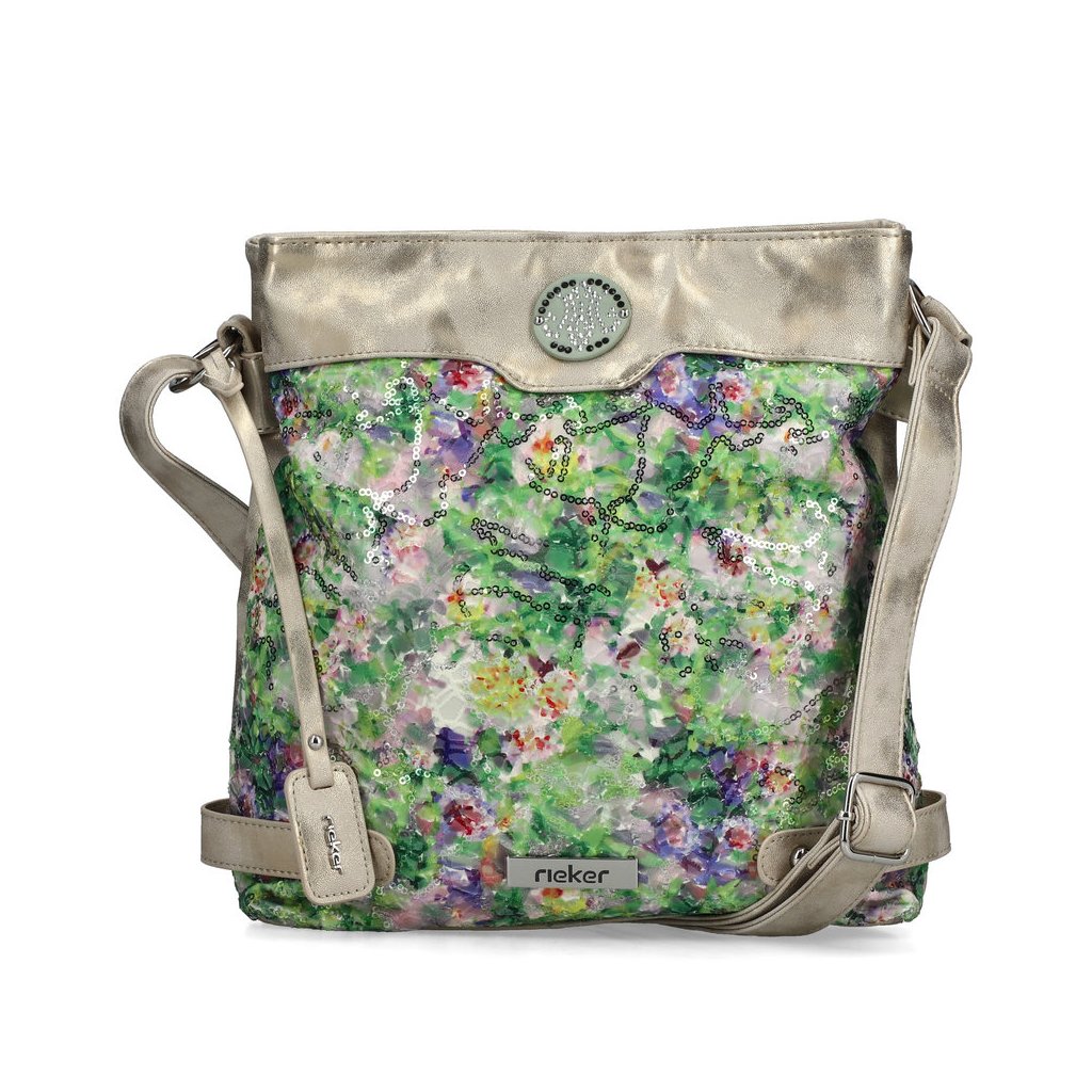 Táto výnimočná dámska taška značky Rieker v metalickej šampanskej farbe spája jarnú eleganciu s praktickosťou. Prednú stranu zdobí vibrujúci kvetinový vzor s flitrami, ktorý dodáva jedinečný vzhľad, zatiaľ čo dve samostatné hlavné priehradky na zips a bezpečnostné vrecko na zadnej strane sa postarajú o prehľadné uloženie vašich cenností. Vďaka nastaviteľnému ramennému popruhu sa pohodlne nosí cez rameno alebo ako crossbody, čo z nej robí štýlový a spoľahlivý doplnok na každý deň.