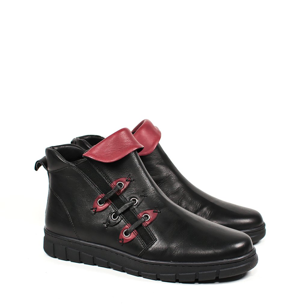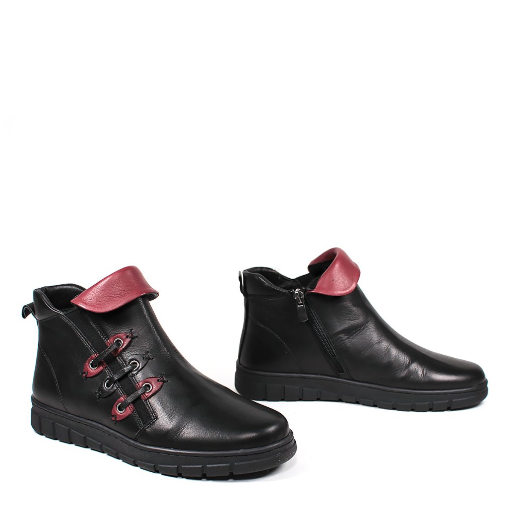 Nadčasové kožené členkové topánky Secretshoes sú ideálnym kúskom pre váš šatník. Súčasťou dizajnu je nielen klasická čierna farba, ale aj štýlový bordový detail. S praktickým zipsom sa ľahko a rýchlo obúvajú, zatiaľ čo 3 cm opätok vám zaistí komfort počas celého dňa. Ich kvalitné kožené spracovanie zaručuje dlhú životnosť a skvelý vzhľad.