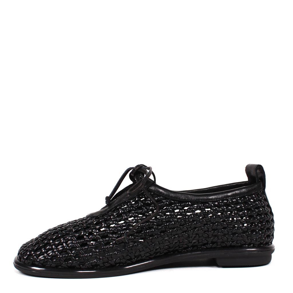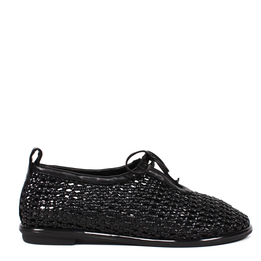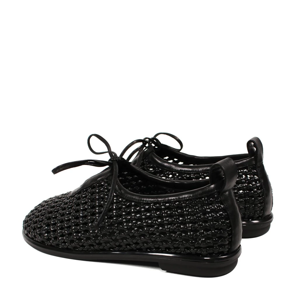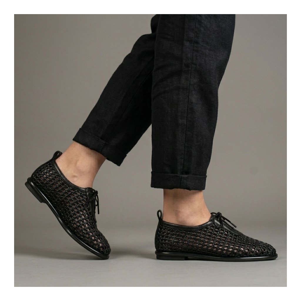 Tieto výnimočné dámske poltopánky s pletenou textúrou predstavujú dokonalé spojenie pohodlia a jedinečného štýlu. Jemne vypracovaný zvršok v čiernom odtieni je nielen estetický, ale zabezpečuje aj vynikajúcu priedušnosť, vďaka čomu je ideálnou voľbou aj počas teplejších dní. Elegantný charakter obuvi zdôrazňujú tenké šnúrky a čisté lemovanie, zatiaľ čo kontrastná hnedá gumová podrážka dodáva celkovému vzhľadu moderný, športový nádych. Vďaka flexibilnému dizajnu a mäkkej stielke poskytujú celodenný komfort, či už ide o prechádzku mestom alebo pracovný deň v kancelárii. Táto obuv skvele doplní ľahké letné šaty, ako aj každodenné outfity s džínsami.