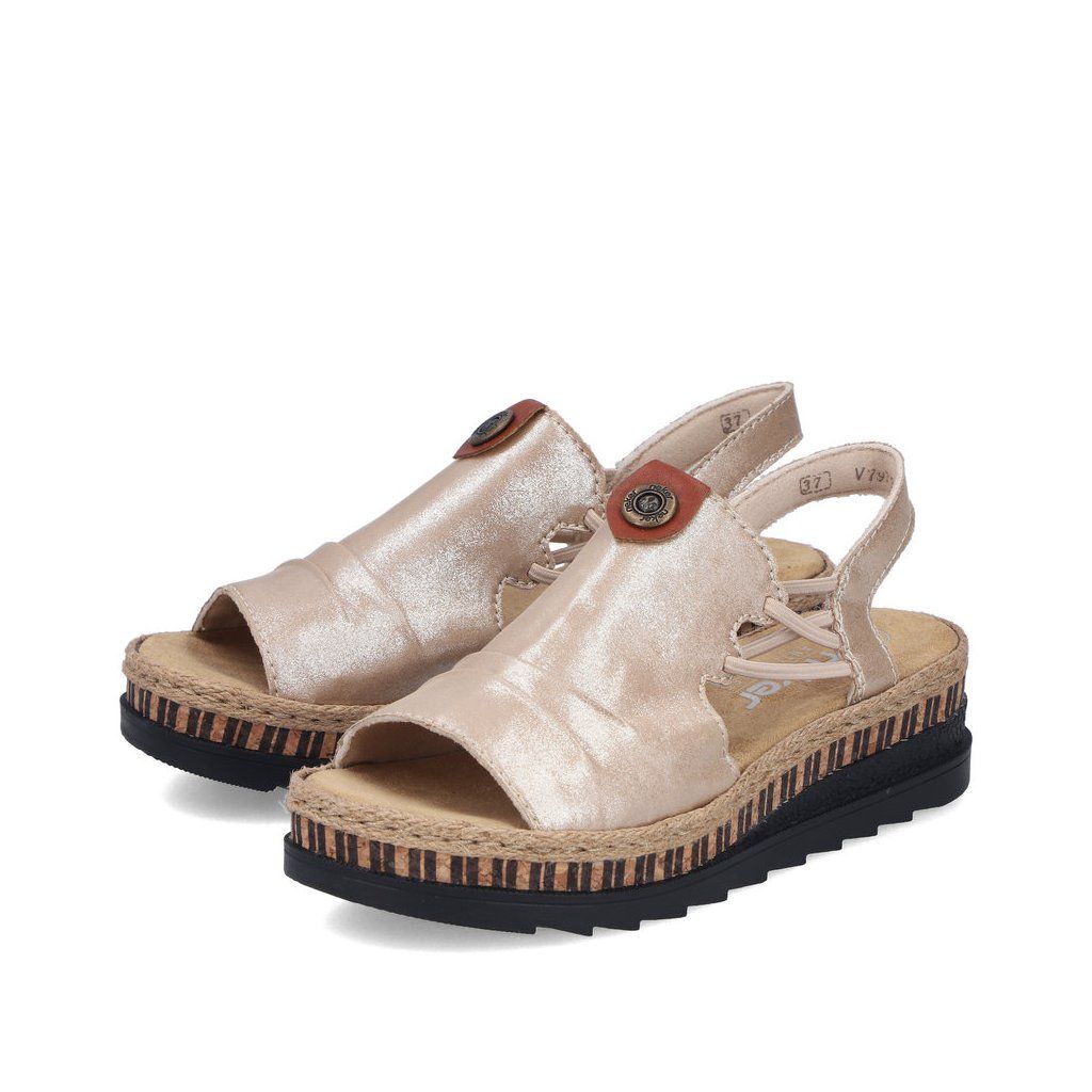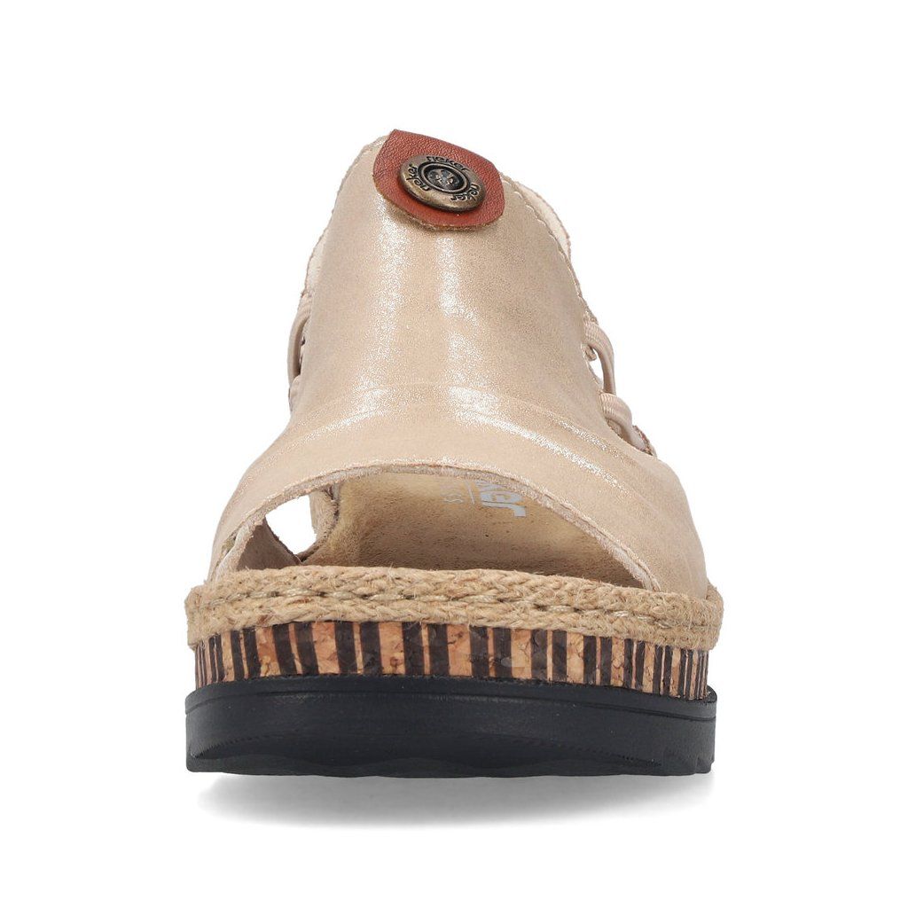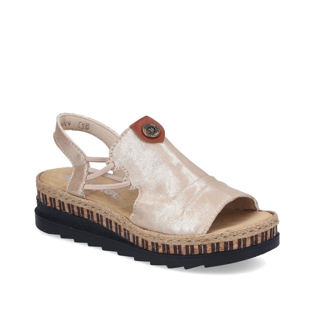 Tieto sandále značky RIEKER sa rýchlo stanú vaším obľúbeným letným spoločníkom. Krémový zvršok je ozvláštnený jemným nariasením a vkusnou kovovou ozdobou, ktorá dodáva modelu ženský a štýlový vzhľad. Vďaka pružným gumičkám po stranách je obúvanie pohodlné, pričom sandále sa krásne prispôsobia tvaru chodidla. Mäkká textilná stielka zabezpečí príjemný došľap a komfort aj pri dlhšej chôdzi. Tento model sa výborne hodí k dlhým sukniam, letným šatám aj ležérnym outfitom a je ideálnou voľbou na prechádzky mestom, dovolenku či bežné letné dni, keď chcete spojiť eleganciu s pohodlím.