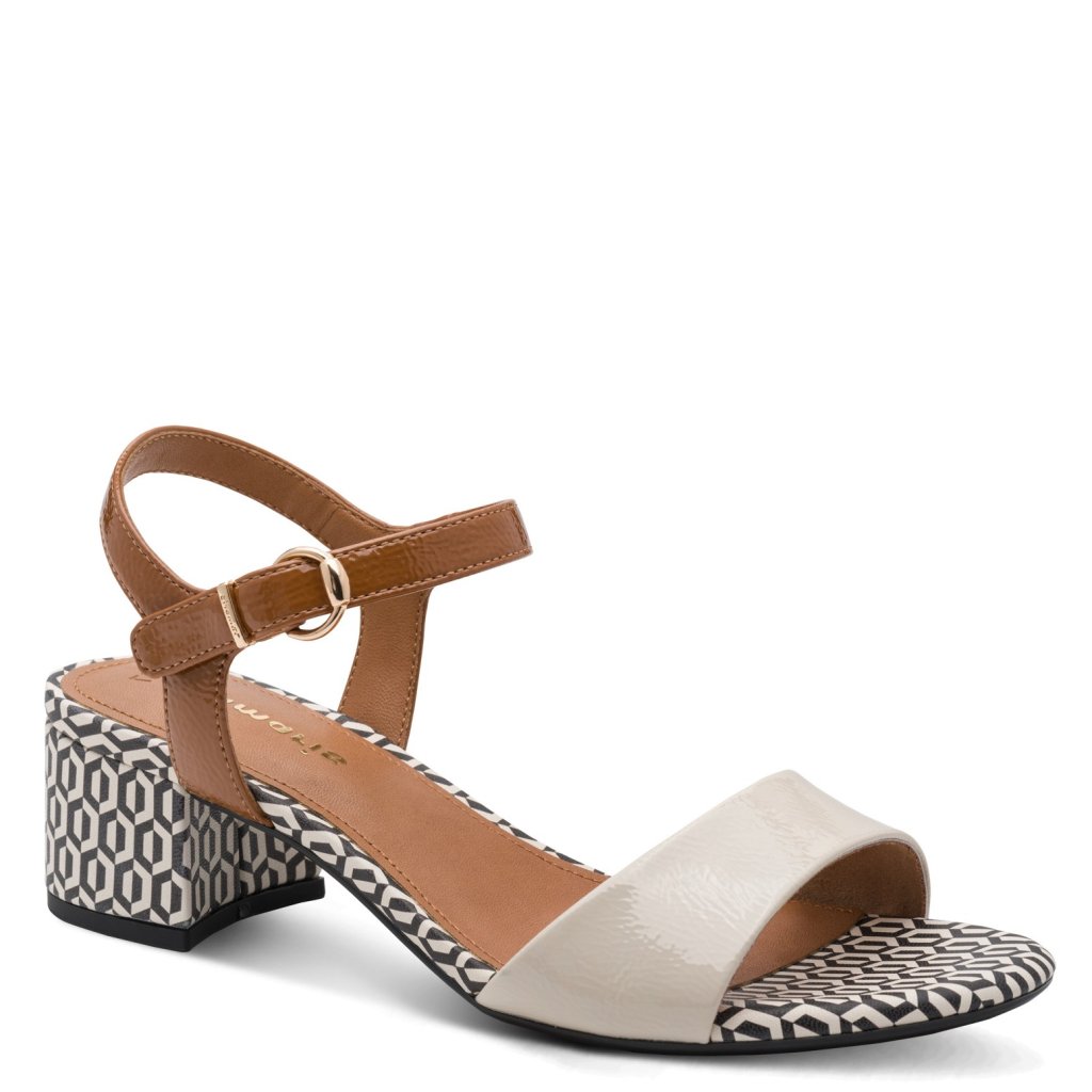 Tieto výnimočné sandále značky Tamaris sú odvážnou, no harmonickou kombináciou farieb a vzorov, ktorá zaručene oživí váš letný šatník. Obuv je vyrobená z elegantnej béžovej a teplej hnedej umelej kože. Charakteristický vzhľad jej dodáva čierno-biely geometrický vzor, ktorý sa tiahne pozdĺž stielky a celého podpätku. Stabilný blokový podpätok je nielen módny, ale vďaka technológii Anti-Slide umiestnenej na päte zaisťuje aj bezpečný krok a protišmykovú priľnavosť. Nastaviteľný hnedý remienok okolo členka so zlatou prackou umožňuje precízne prispôsobenie nohe, zatiaľ čo mäkká vnútorná stielka sa stará o vaše pohodlie. Tento model je ideálnou voľbou pre ženy, ktoré obľubujú jedinečné detaily a hľadajú sandále, ktoré sú zároveň pohodlným aj pútavým doplnkom ku každodenným alebo príležitostným outfitom.