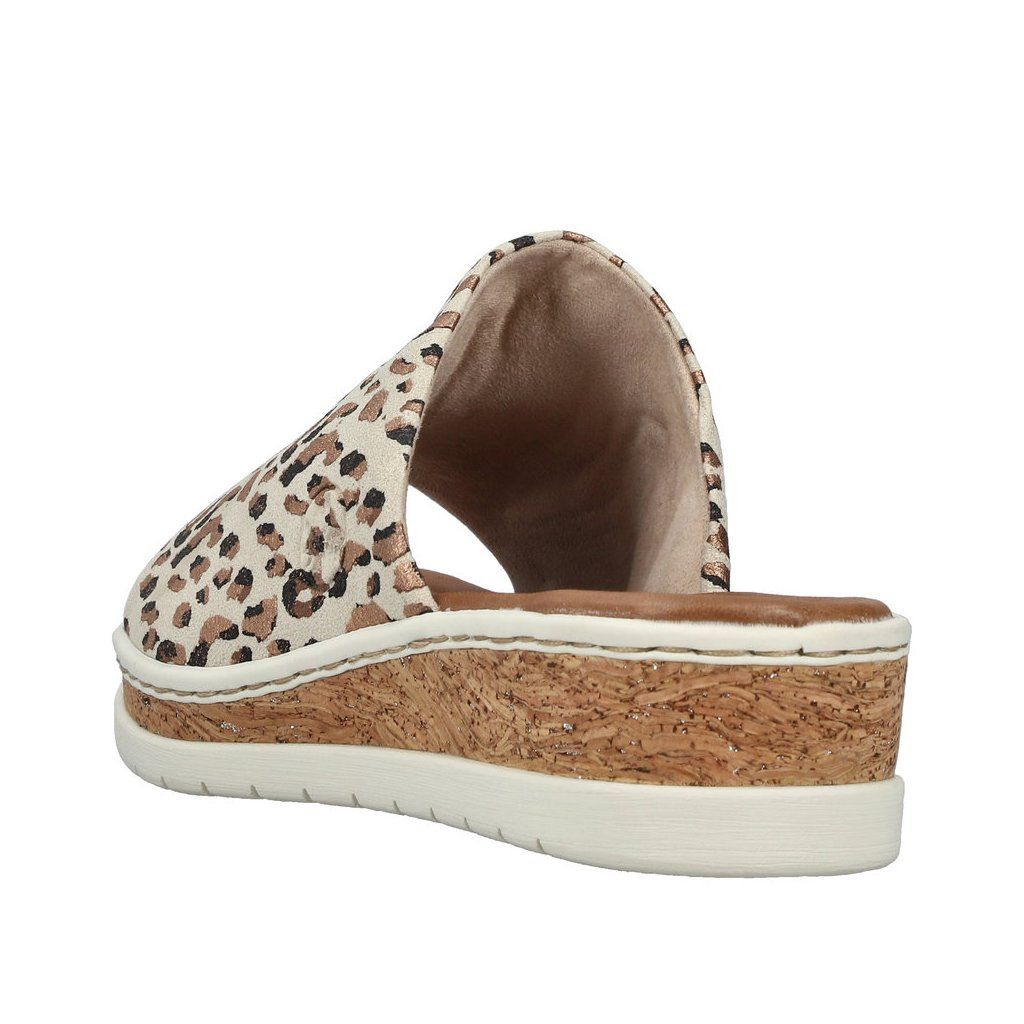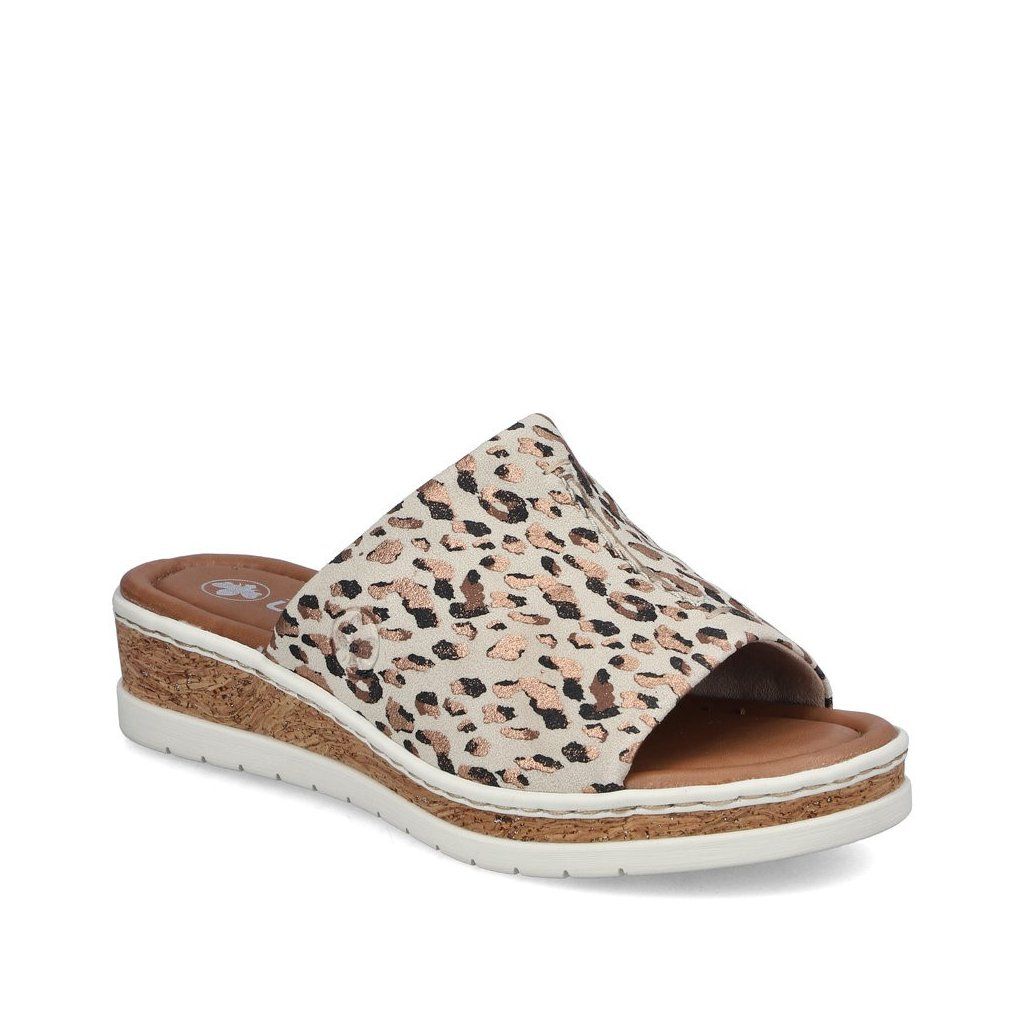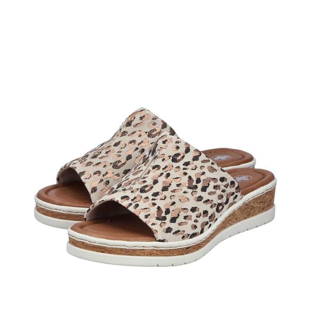 Doprajte si štýl a pohodlie v jednom s týmito šľapkami RIEKER v pôsobivom prevedení. Na prvý pohľad zaujmú širokým priehlavkovým pásikom, ktorý je dekorovaný výraznou potlačou a jemnými odleskami. Tento detail dodáva obuvi jedinečný charakter a robí z nej atraktívny doplnok každého letného outfitu. Vnútorná komfortná stielka je navrhnutá tak, aby poskytovala chodidlu príjemnú oporu a vyššia podošva účinne tlmí nárazy pri chôdzi, čím prispieva k ešte väčšiemu komfortu pri každom kroku. Zároveň opticky zvýrazňuje moderný vzhľad týchto sandálov a dodáva im štýlový nádych. Tieto šľapky RIEKER skvele doplnia letné šaty, sukne aj ležérne nohavice a stanú sa obľúbeným kúskom počas teplých dní.