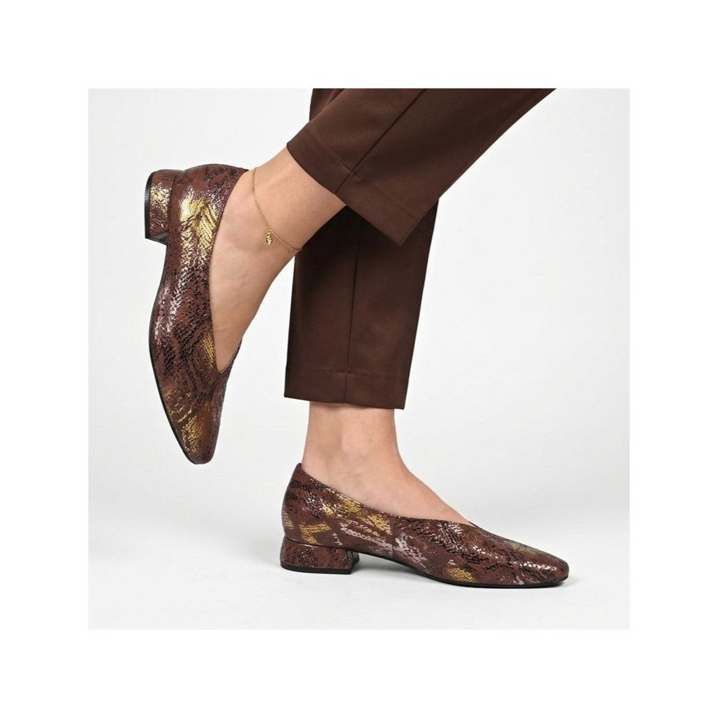 Dizajn: Originálny hadí vzor s jemným metalickým odleskom v hnedo-zlatých tónoch, ktorý dodáva obuvi luxusný nádych.