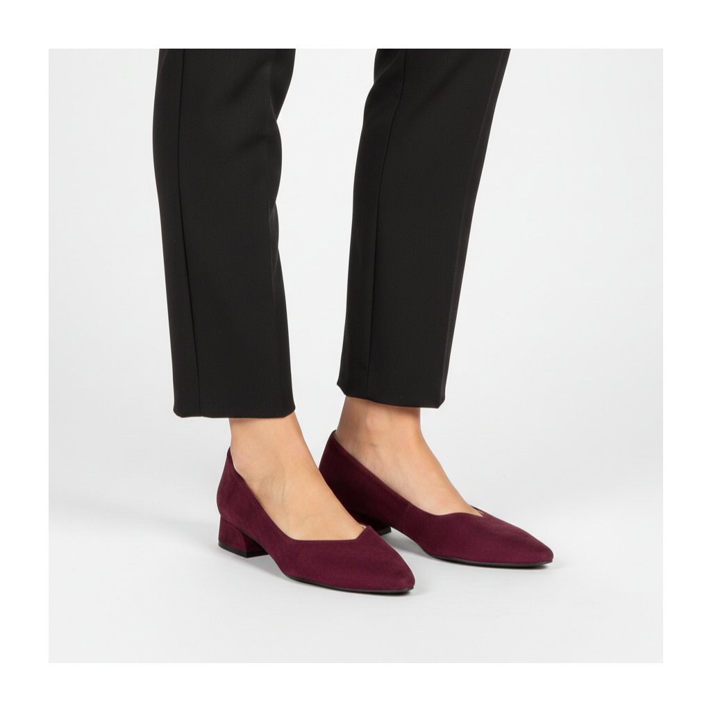 Tieto tmavofialová dámske topánky značky Secretshoes sú dokonalým spojením čistej elegancie a moderného pohodlia. Jemný semišový zvršok a špeciálny výstrih v tvare písmena V nielen opticky predlžujú chodidlo, ale dodávajú nositeľke aj sofistikovaný vzhľad. Nízky, stabilný blokový podpätok z nich robí ideálnu voľbu na celodenné nosenie, či už ide o prácu v kancelárii alebo večerný program. Béžové vnútro a precízne spracovanie zaručujú prémiovú kvalitu, ktorá dodáva sebavedomie pri každom kroku.