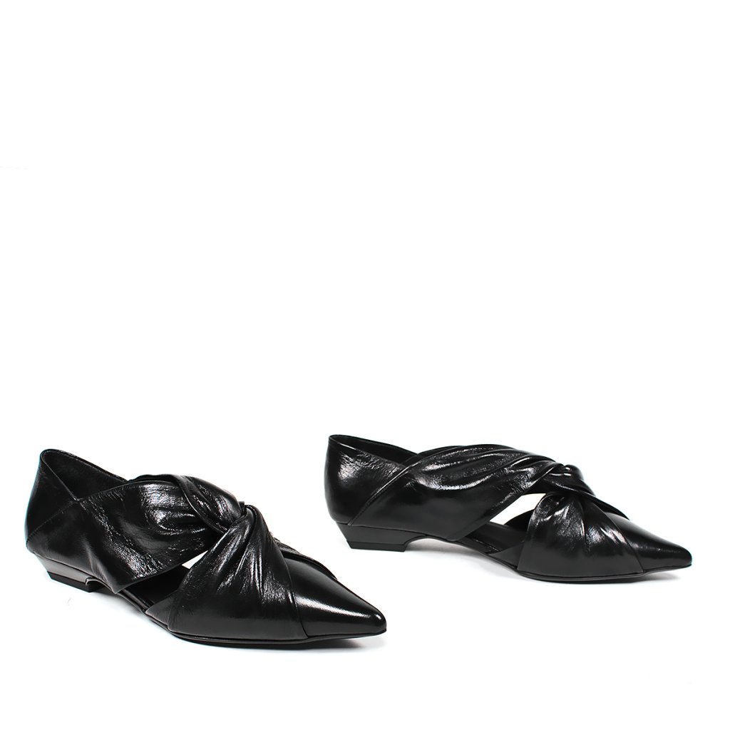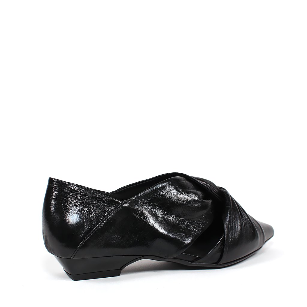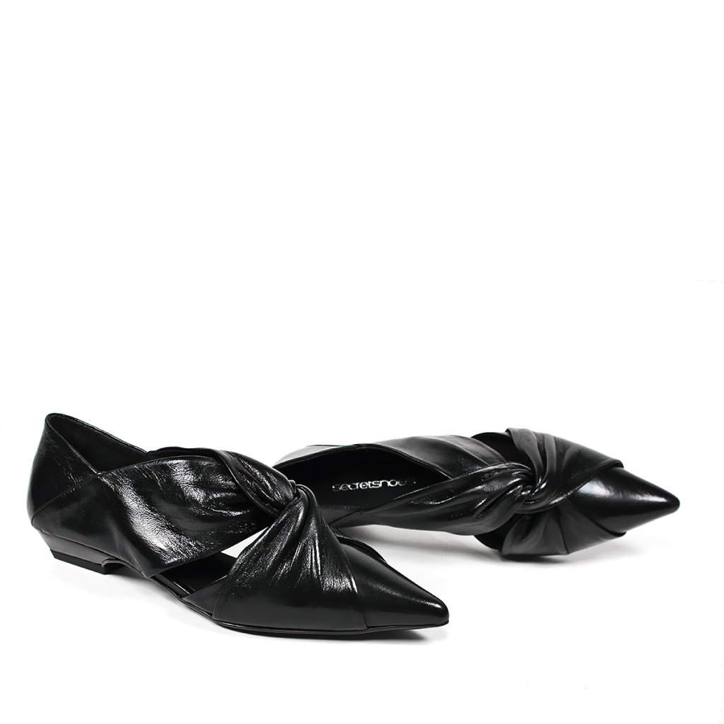 Tieto sofistikované poltopánky značky Secretshoes sú dokonalým spojením modernej elegancie a výnimočného dizajnu. Model vyrobený z hlbokej čiernej, jemne lesklej kože zaujme predovšetkým efektným uzlom na priehlavku, ktorý dodáva obuvi textúru a jedinečný charakter. Špicatá špička v kombinácii s nízkym, stabilným podpätkom zaručuje ženskú siluetu a zároveň celodenné pohodlie. Bočné výrezy dodávajú dizajnu ľahkosť, vďaka čomu je tento kúsok ideálnou voľbou do kancelárie aj ako doplnok k elegantnejším spoločenským outfitom.