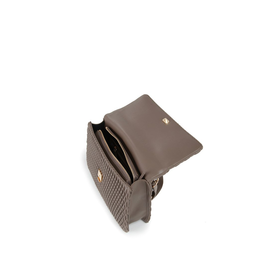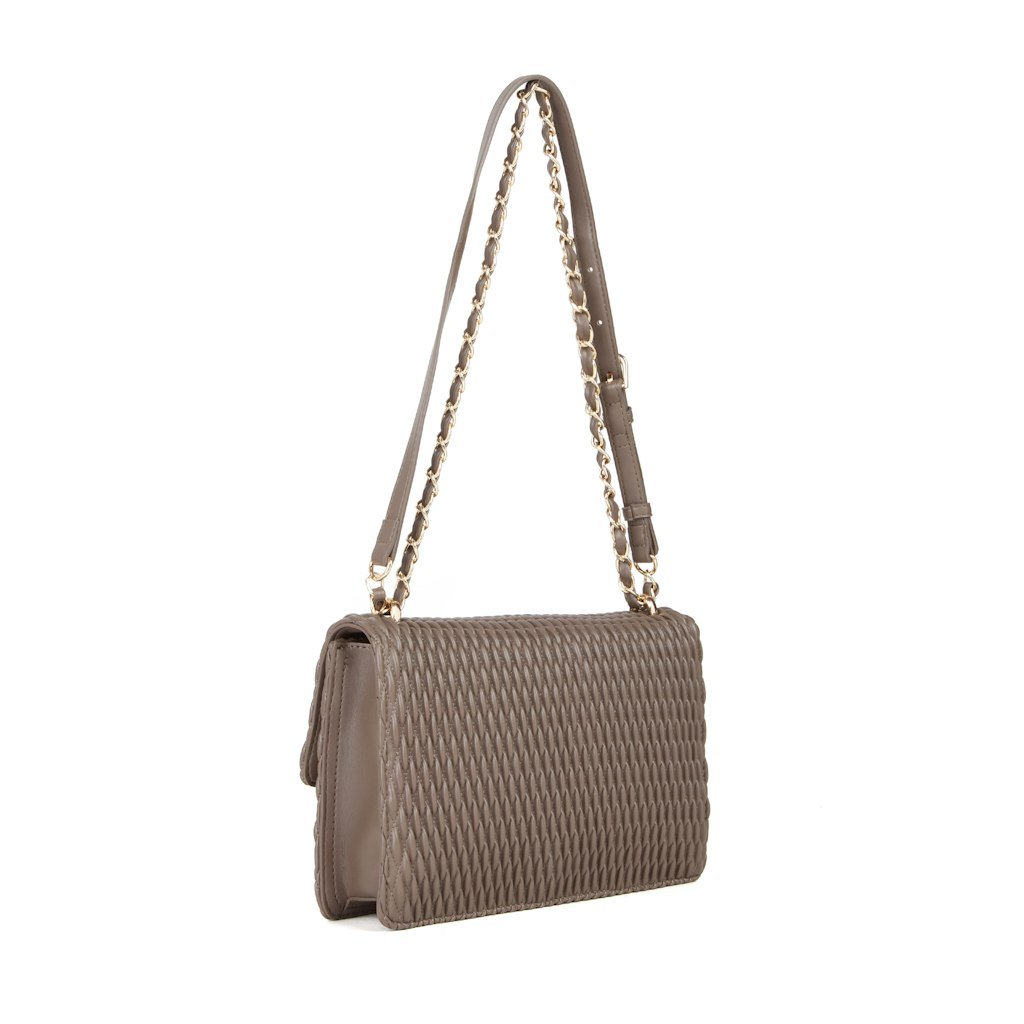 Rafinovaná taška matelassé s chlopňou, s kovovým logom na prednej strane.-Súčasťou nastaviteľnej retiazky a strapcového ramenného popruhu.