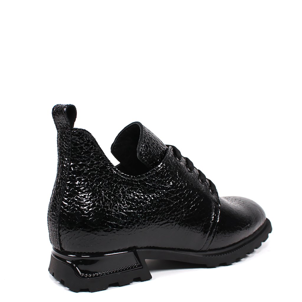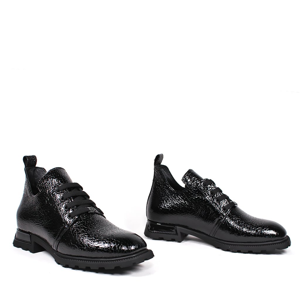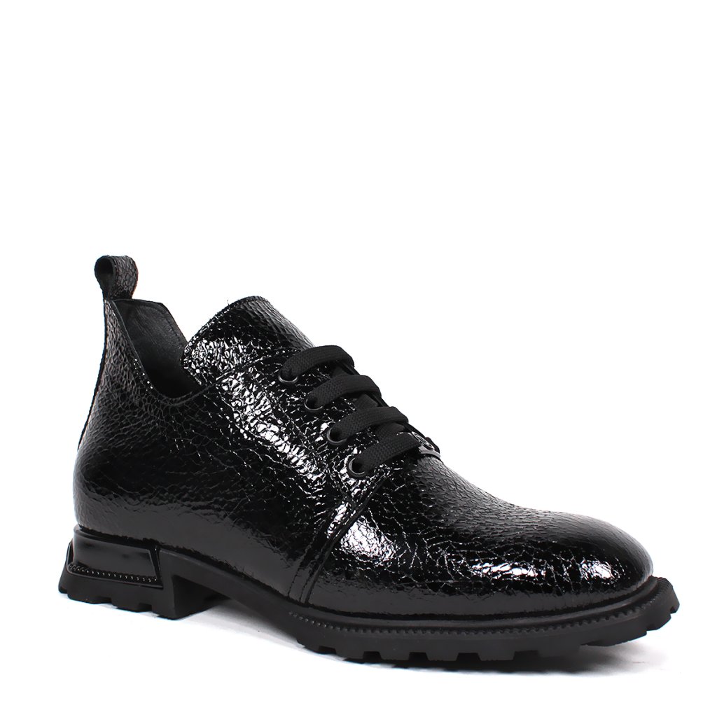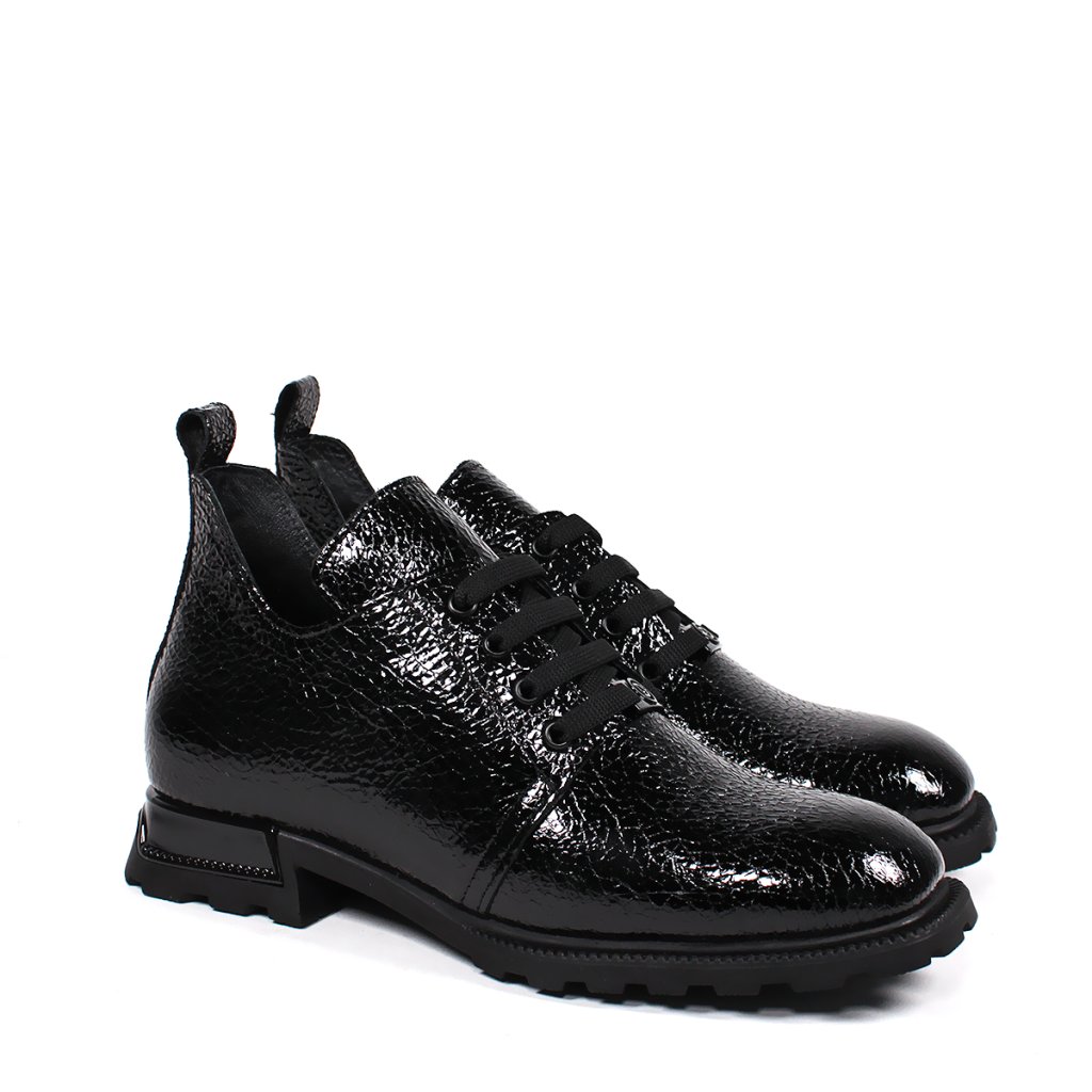 Tieto elegantné členkové topánky Secretshoes v čiernej farbe sú ideálnym doplnkom pre každú modernú ženu. Sú vyrobené z kvalitnej potlačovej kože a majú koženú vnútornú stielku, čo zaručuje maximálne pohodlie. Vďaka nízkemu 2,5 cm opätku a praktickému šnurovaniu sú ideálnou voľbou na denné nosenie.