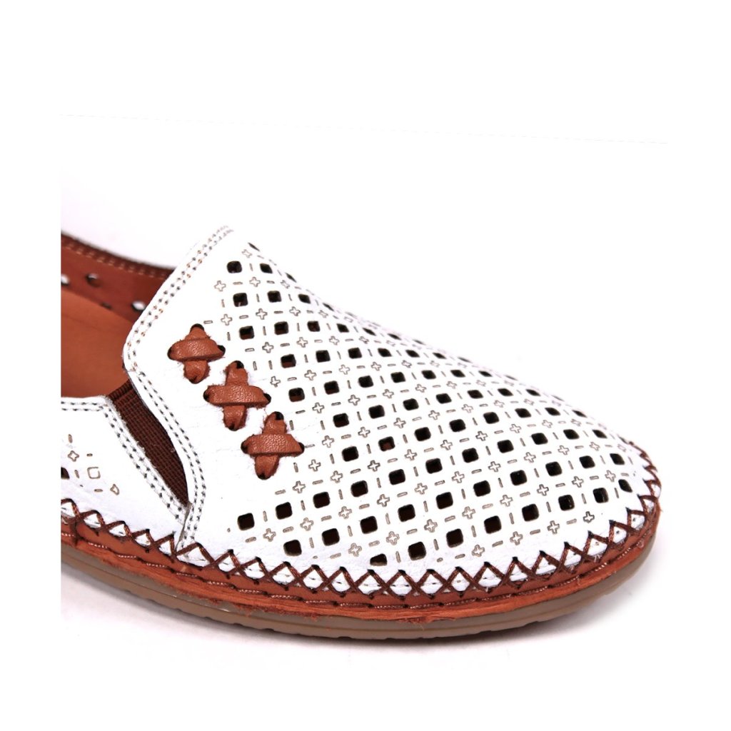 Pohodlné, priedušné slip on poltopánky naladené na jarnú/letnú sezónu Slovenská značka SECRETSHOES sa charakterizuje jedinečným dizajnom, eleganciou a vysokou kvalitou. Výška podpätku: 2 cm Farba: biela Sezóna: jar/leto Tvar špičky: okrúhla Materiál zvršok: koža Materiál podšívka: koža Materiál podošva: syntetická podošva - gumaBuďte prvý, kto napíše príspevok k tejto položke.