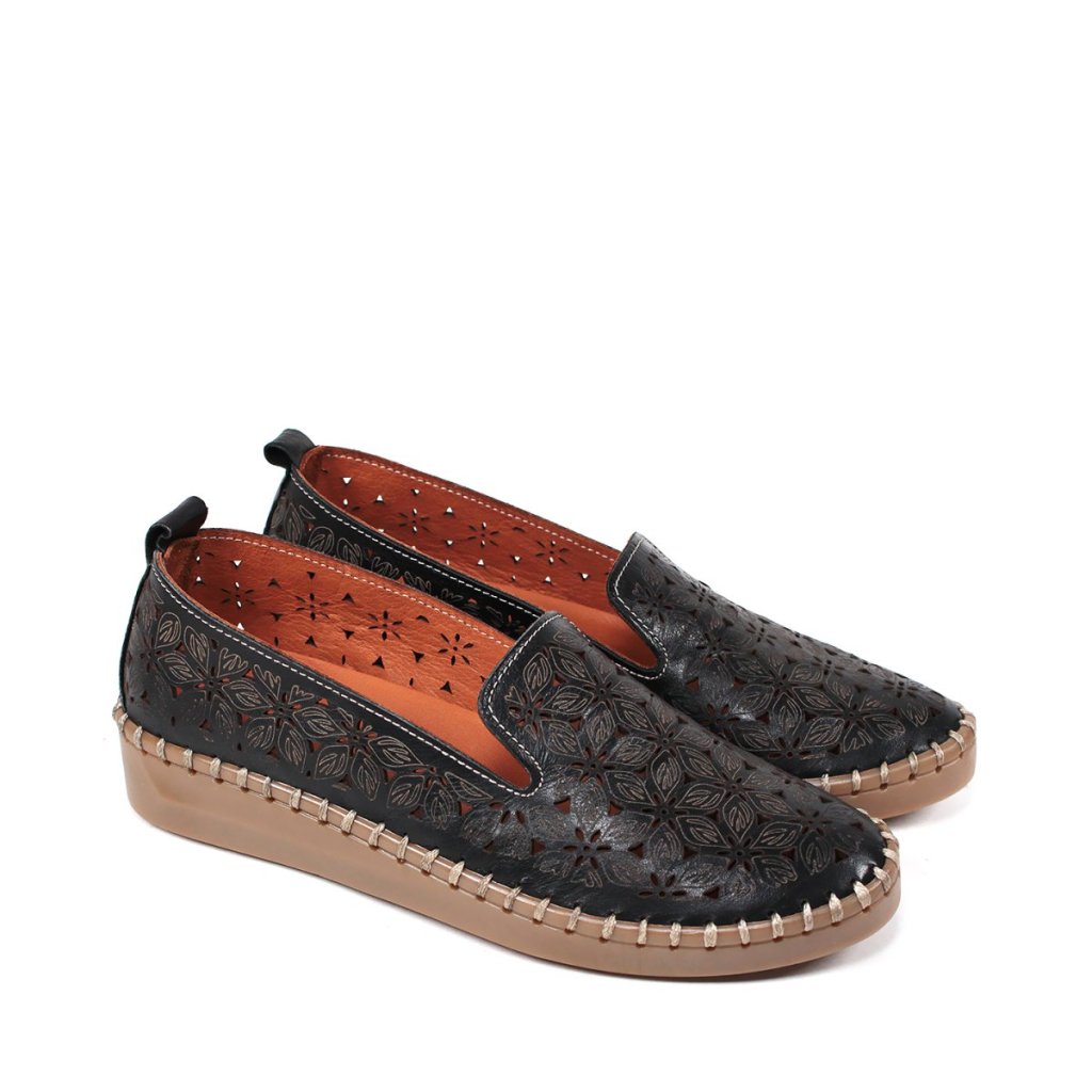 Pohodlné, priedušné slip on poltopánky naladené na jarnú/letnú sezónu Slovenská značka SECRETSHOES sa charakterizuje jedinečným dizajnom, eleganciou a vysokou kvalitou. Výška podpätku: 3 cm Farba: čierna Sezóna: jar/leto Tvar špičky: okrúhla Materiál zvršok: koža Materiál podšívka: koža Materiál podošva: syntetická podošva - gumaBuďte prvý, kto napíše príspevok k tejto položke.