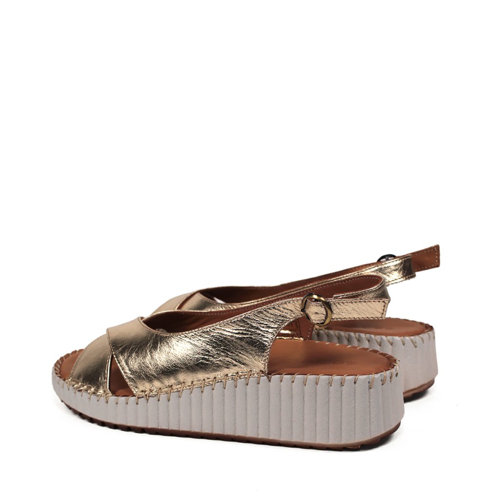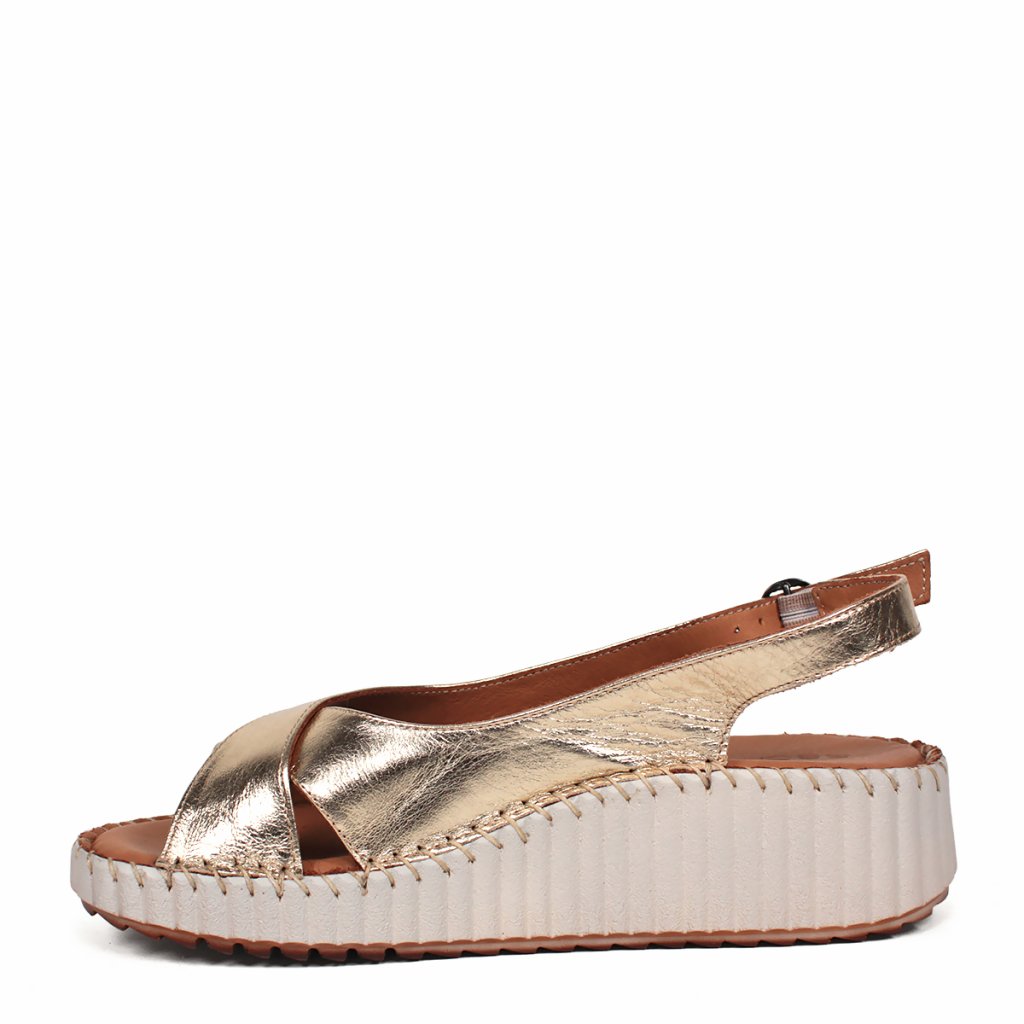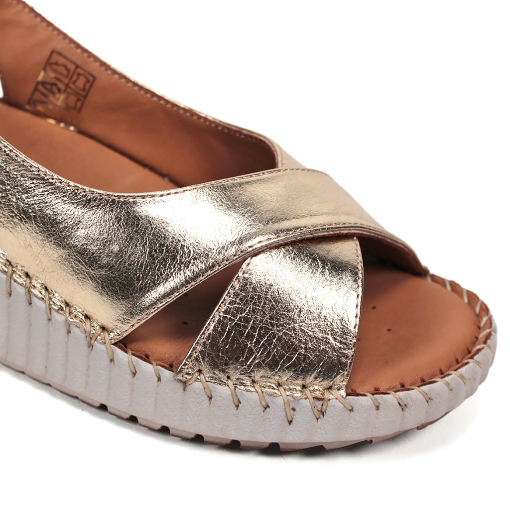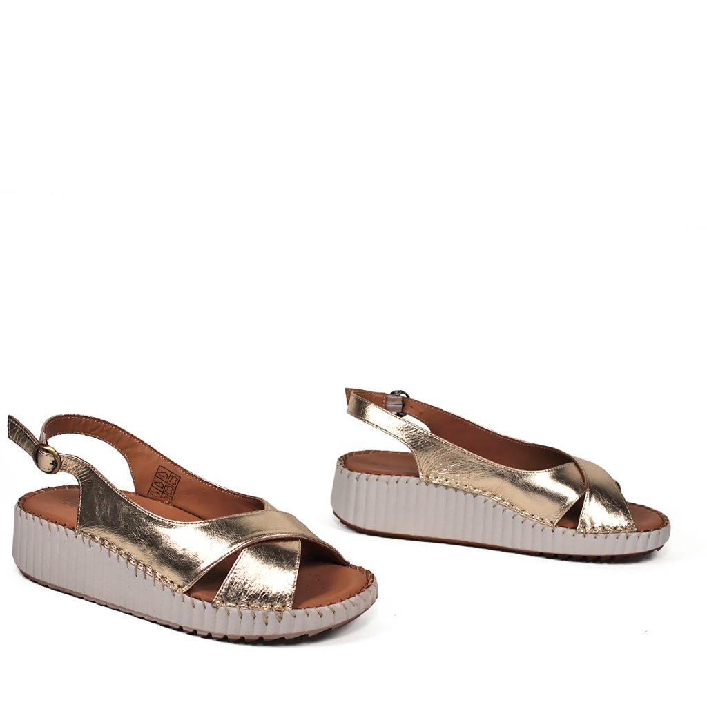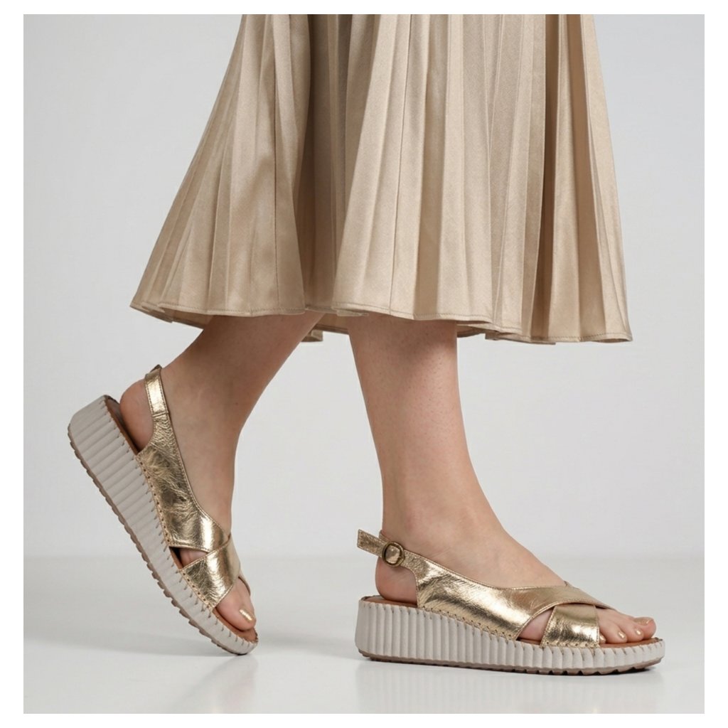 Žiarivý zlatý zvršok: Kvalitná koža s metalickým odleskom dodáva sandálam punc luxusu a okamžite rozžiari váš letný outfit.