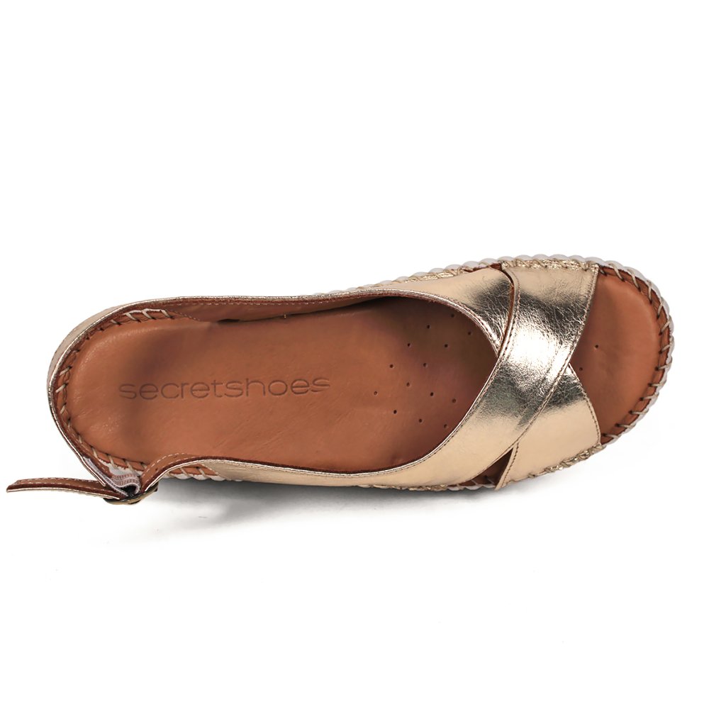 Premeňte každú prechádzku na výnimočnú udalosť. Tieto kožené sandále značky Secretshoes v oslnivom zlatom prevedení sú stvorené pre ženy, ktoré milujú eleganciu spojenú s absolútnym komfortom.