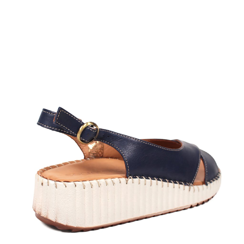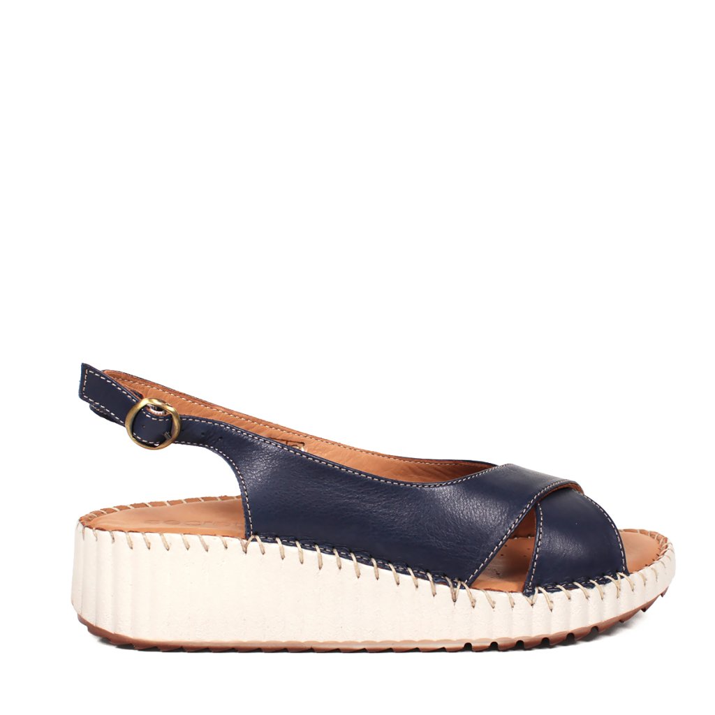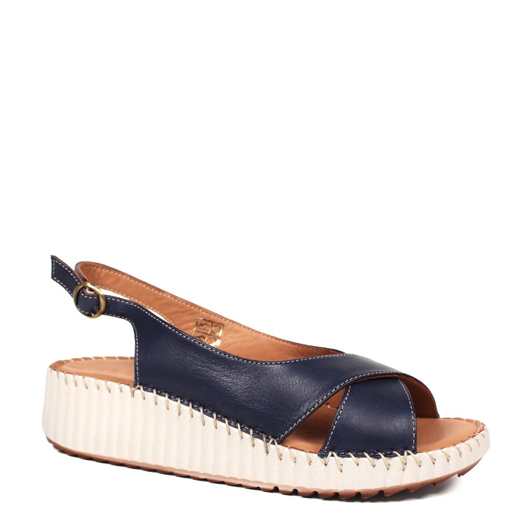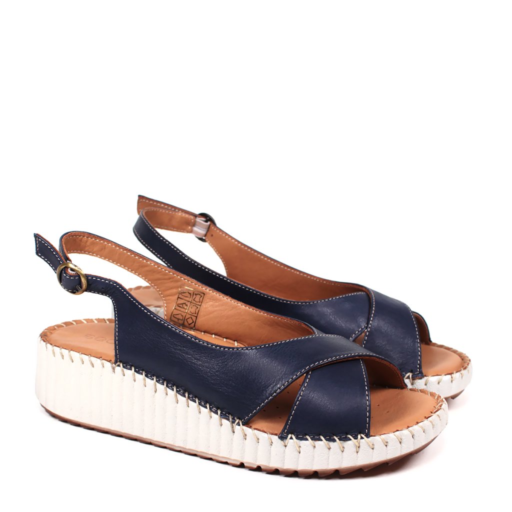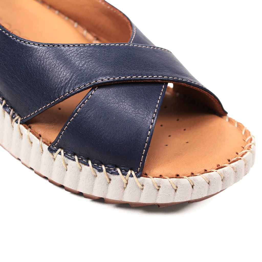 Prémiová koža: Kvalitný tmavomodrý zvršok s elegantným prekrížením pôsobí luxusne a je príjemný na dotyk.