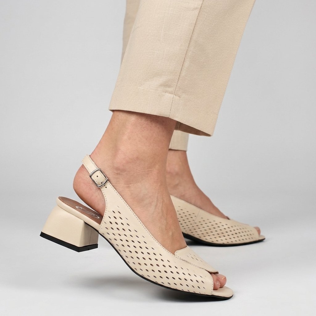 Tieto elegantné béžové dámske sandále značky Secretshoes predstavujú dokonalú kombináciu vycibreného štýlu a každodenného pohodlia. Jedinečnosť obuvi spočíva v precíznom, laserom vyrezávanom vzore, ktorý dodáva nielen moderný vzhľad, ale zabezpečuje aj vynikajúcu priedušnosť počas teplejších dní. Stabilný, stredne vysoký blokový podpätok a otvorená špička zaručujú sebavedomú chôdzu, zatiaľ čo nastaviteľný remienok s prackou poskytuje optimálnu oporu v oblasti členka. Sú ideálnou voľbou do kancelárie alebo na elegantnejšie príležitosti, kde pohodlie nesmie ustúpiť štýlu.