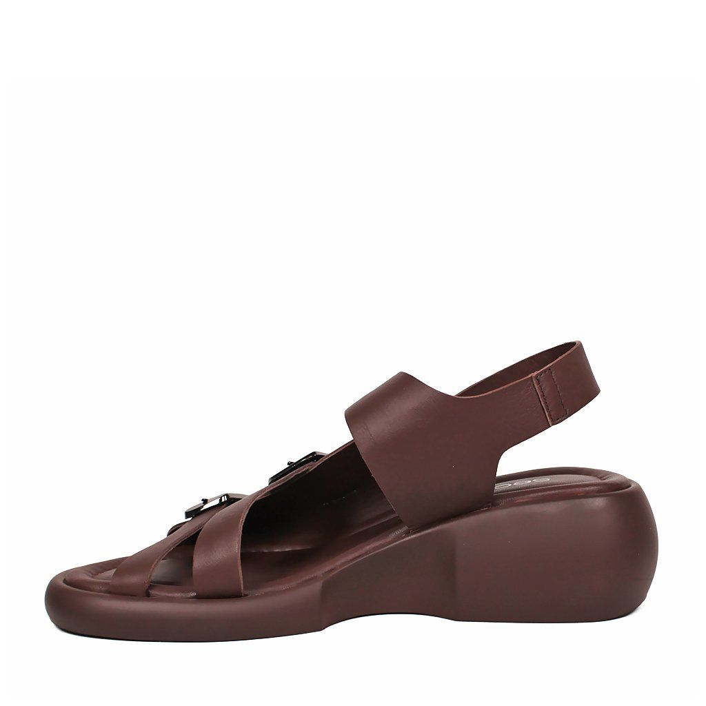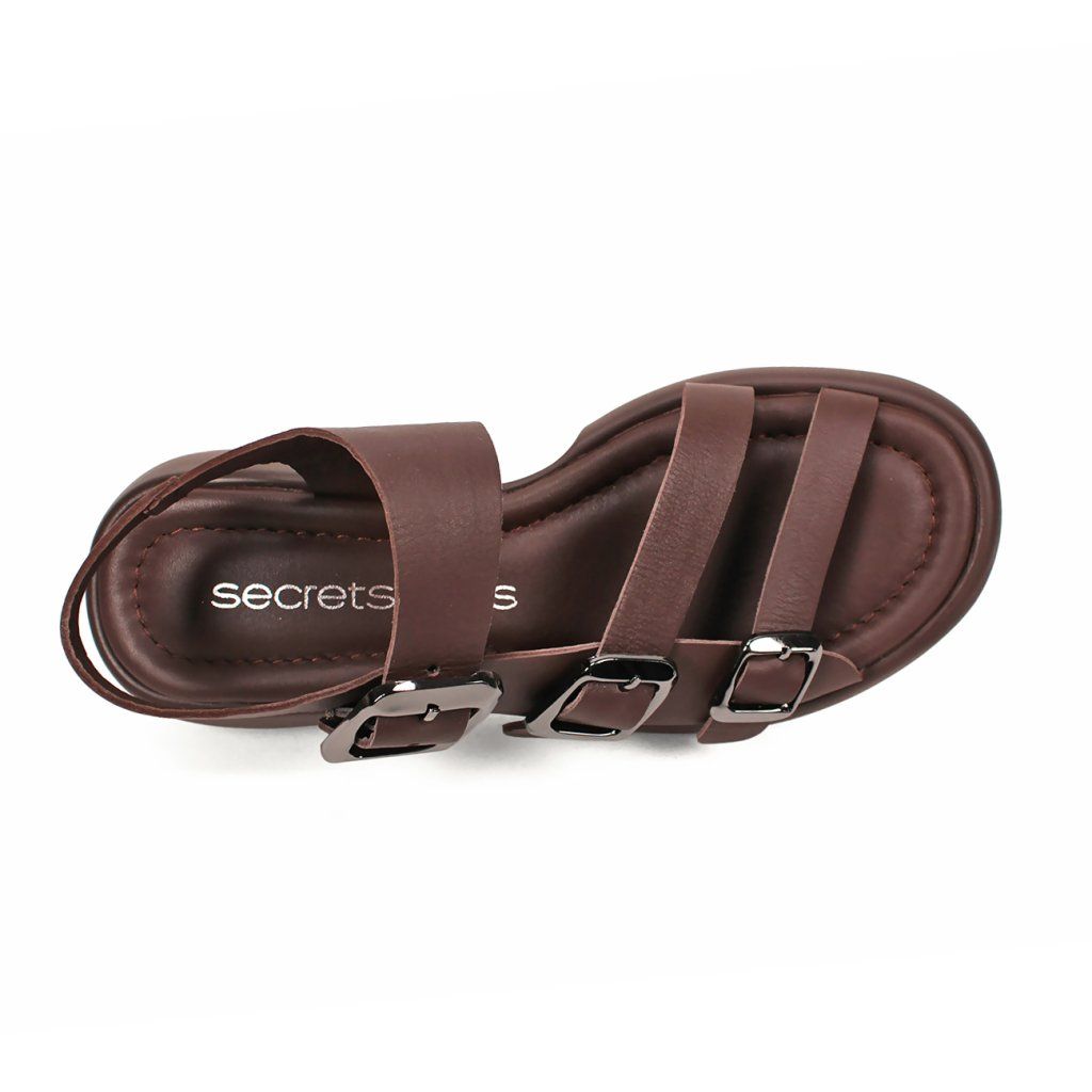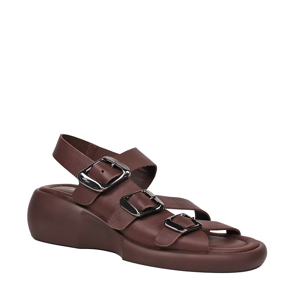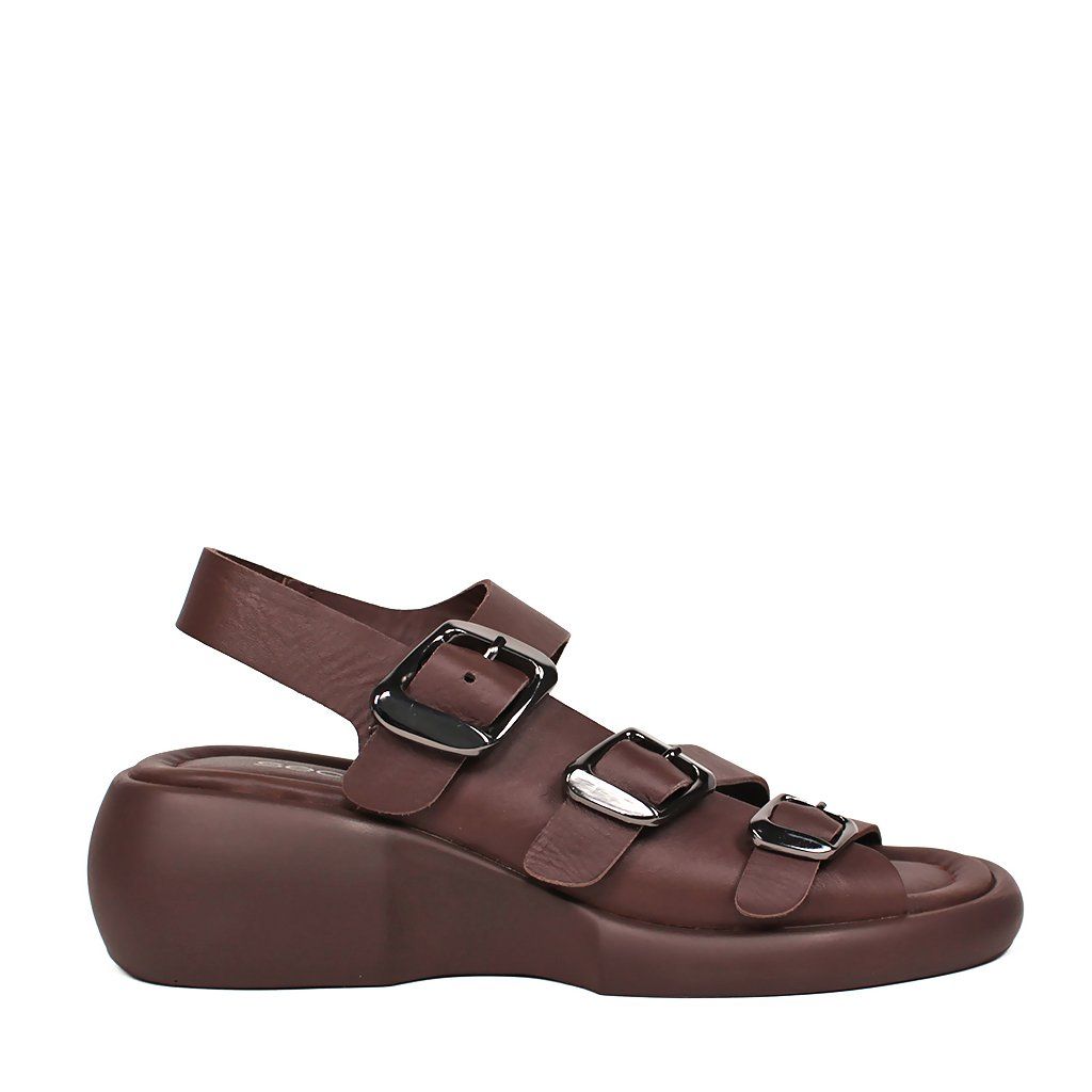 Tieto moderné hnedé dámske sandále predstavujú dokonalé spojenie pohodlia a štýlu na každý deň. Charakter obuvi dodávajú tri hrubšie remienky nastaviteľné striebornými prackami, ktoré sú nielen vizuálne príťažlivé, ale zabezpečujú aj precízne prispôsobenie nohe. Špeciálne tvarovaná masívna platforma dodáva modelu moderný a športovo-elegantný vzhľad, pričom poskytuje chodidlám optimálnu oporu. Mäkká stielka a zadný remienok, ktorý pevne drží pätu, zaručujú celodenný komfort, vďaka čomu sú tieto sandále ideálnou voľbou na mestské prechádzky aj na dlhšie pracovné dni.
