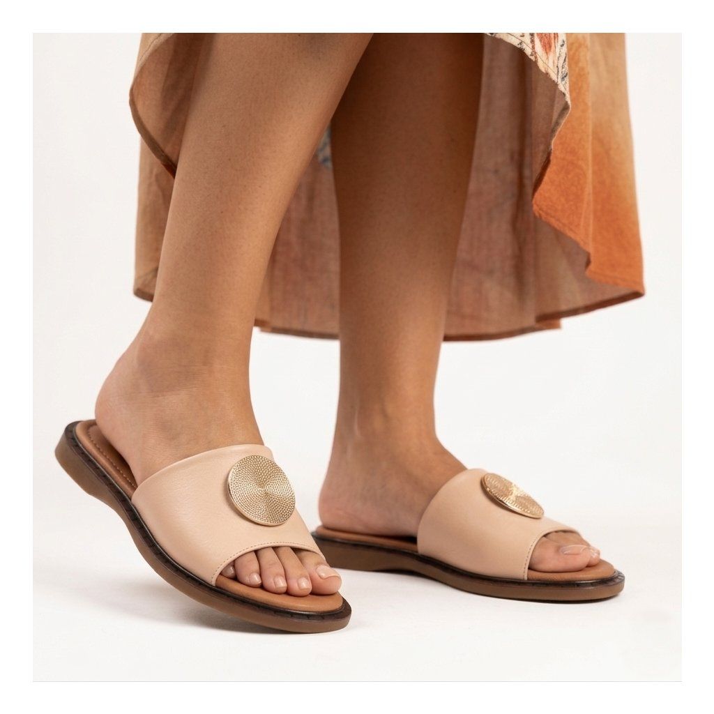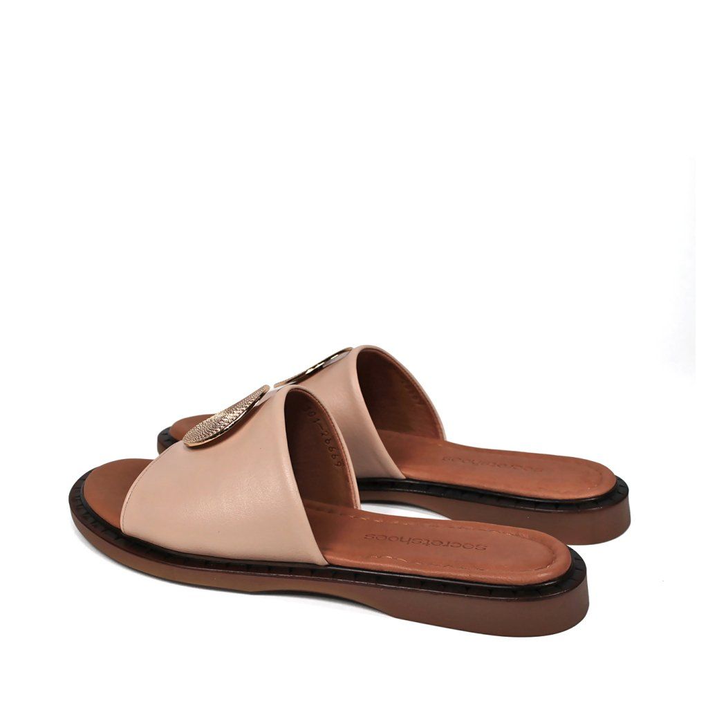 Elegantné a maximálne pohodlné šľapky značky Secretshoes vyrobené z kvalitnej kože. Béžový dizajn dopĺňa výrazný zlatý detail, ktorý dodáva obuvi šmrnc. Ideálna voľba pre milovníčky ležérnej elegancie na každý deň.