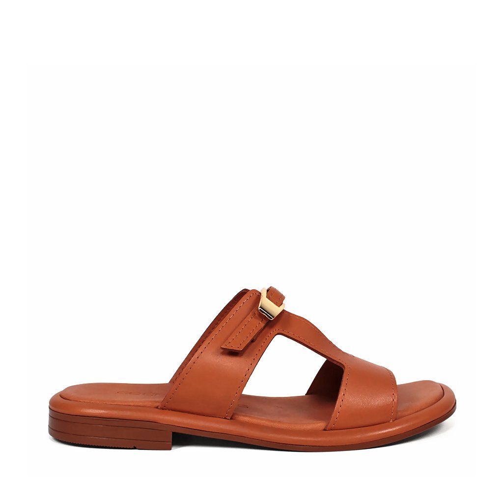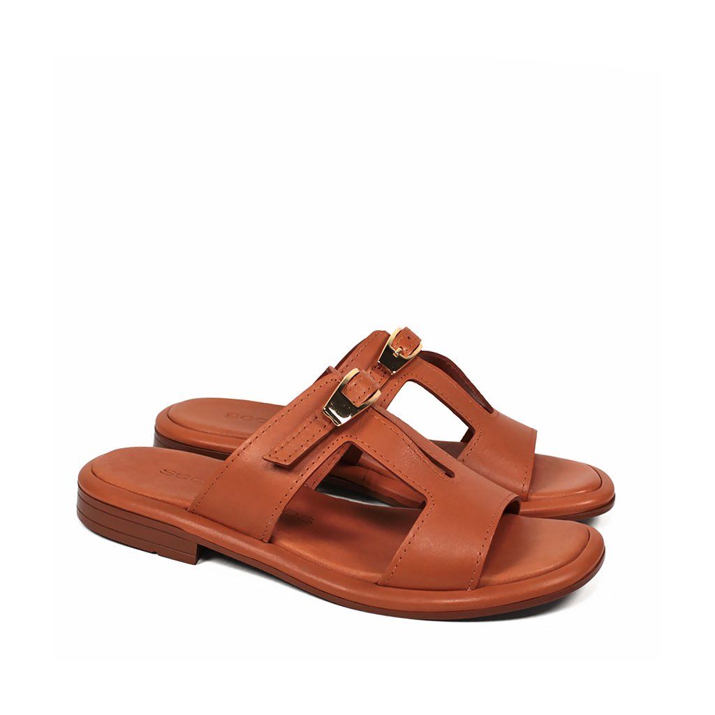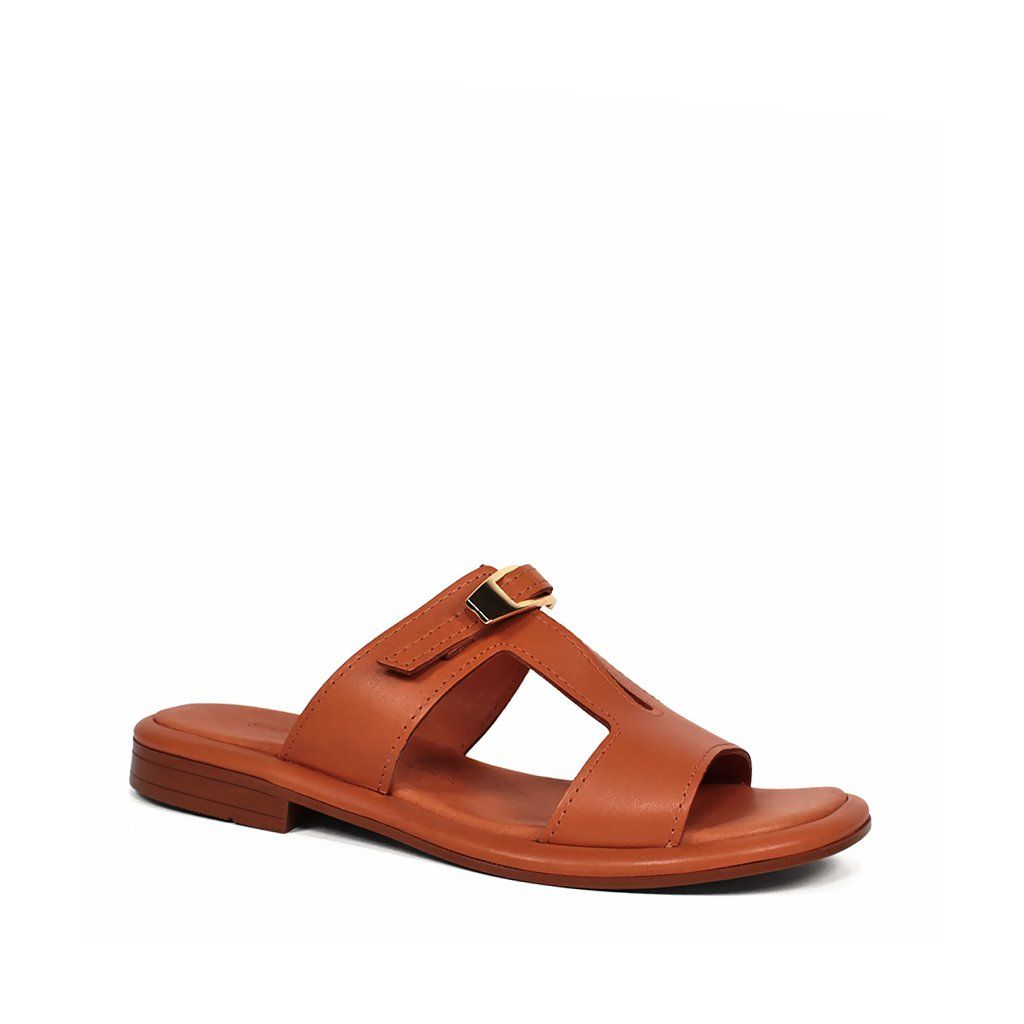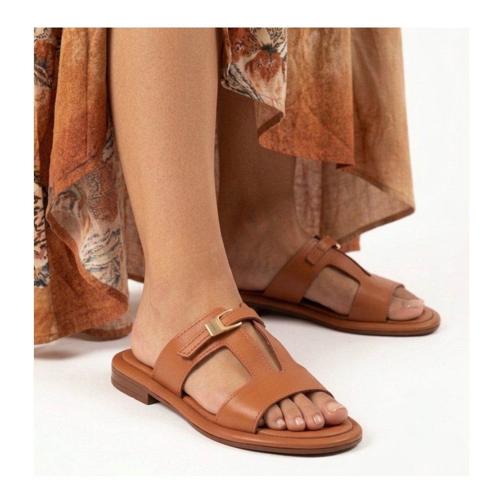 Doprajte svojim nohám luxus a pohodlie s koženými šľapkami Secretshoes. Tento model v nadčasovej koňakovej farbe je stelesnením letnej elegancie. Kvalitné kožené spracovanie dopĺňa vkusný výrez v tvare písmena „H“ a decentná zlatá spona, ktorá dodáva topánkam punc luxusu. Vďaka nízkemu podpätku s výškou 1,5 cm sú ideálnou voľbou na celodenné nosenie v meste aj na dovolenke.