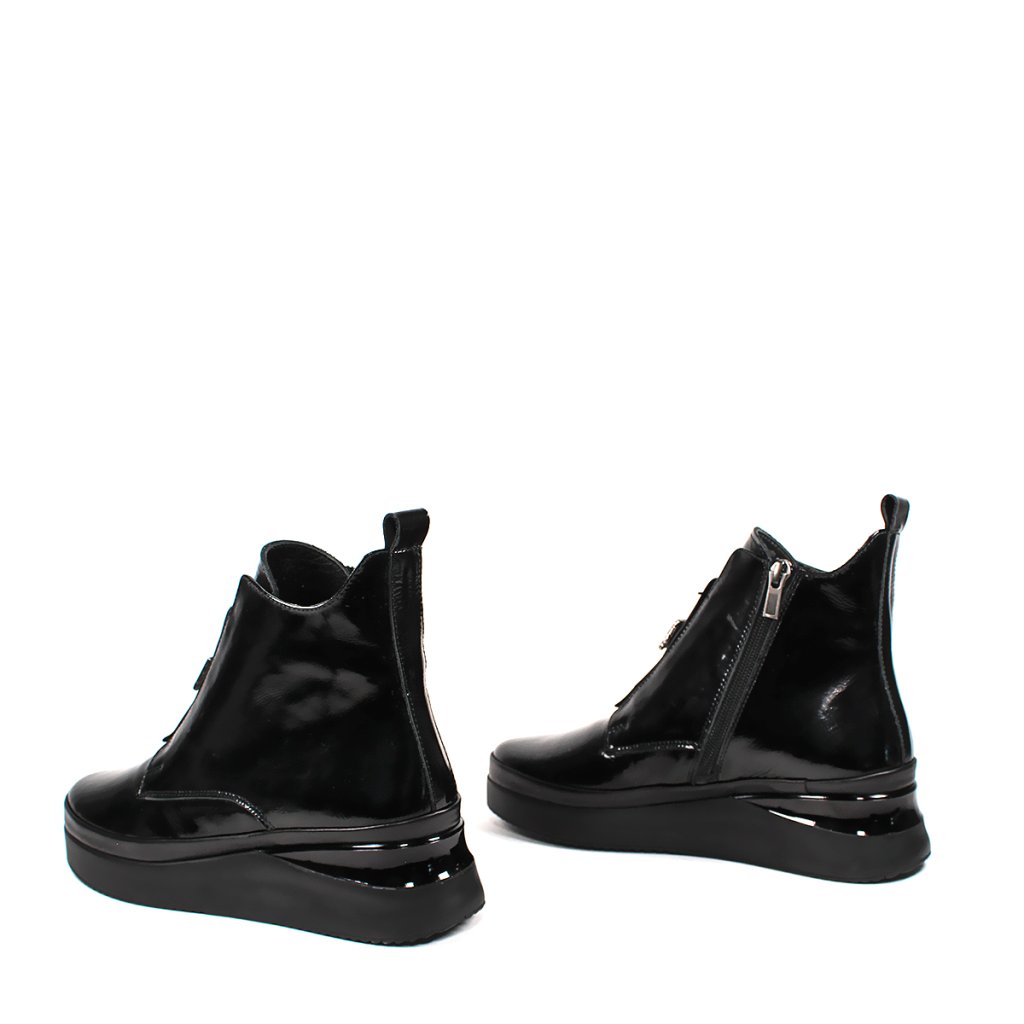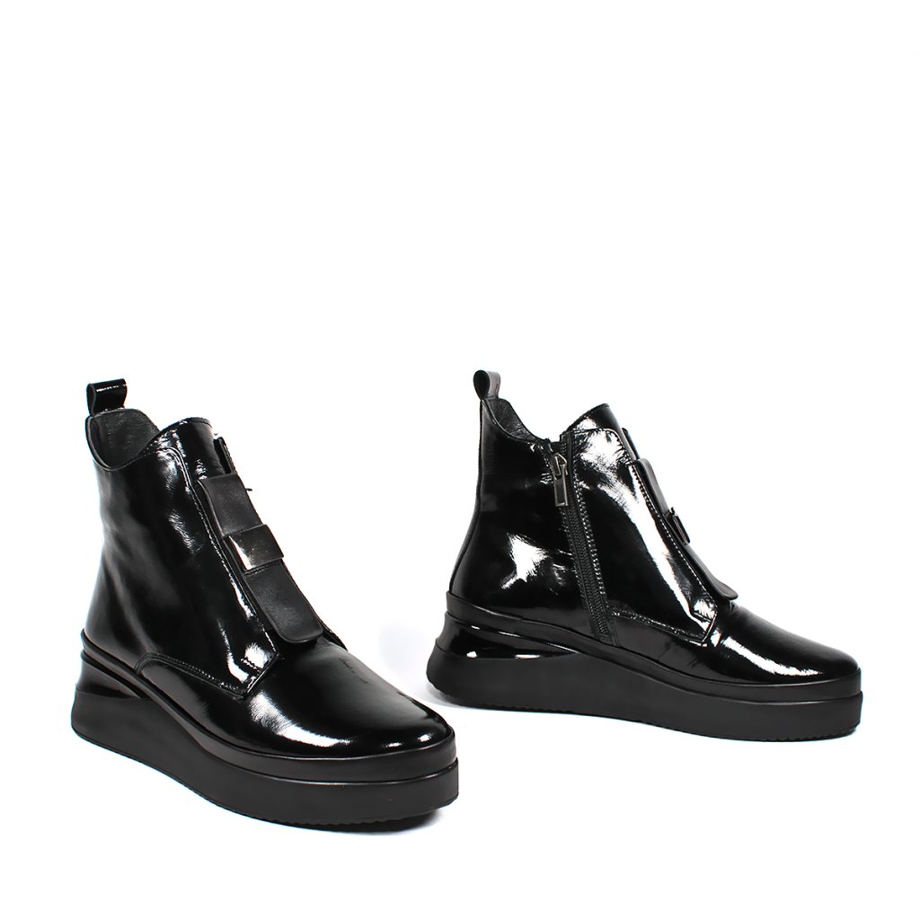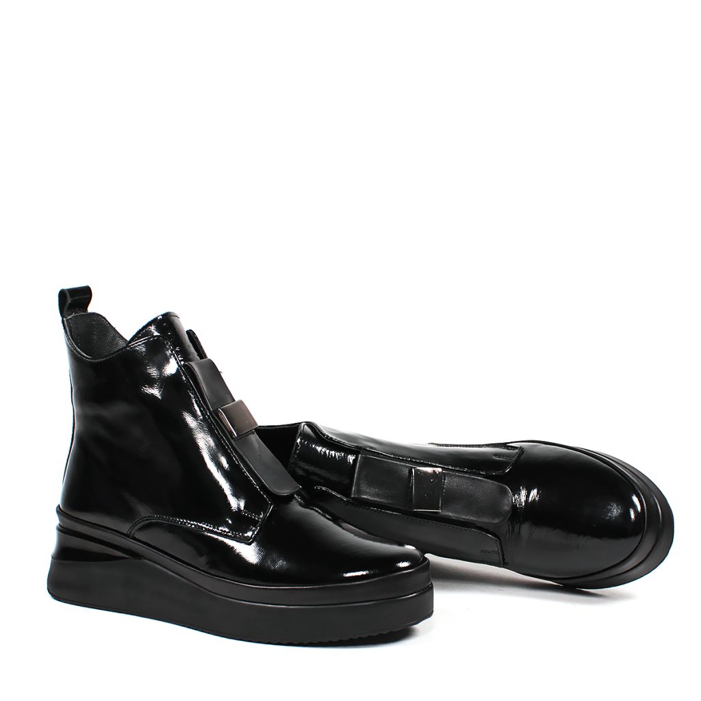 Tieto čierne lakované členkové čižmy Secretshoes sú ideálnym kúskom pre váš jesenný a zimný šatník. Ich lesklý povrch okamžite upúta pozornosť a dodá vášmu outfitu moderný, sofistikovaný vzhľad. S pohodlným 4 cm opätkom si užijete komfort po celý deň, či už idete do práce alebo na večernú prechádzku.