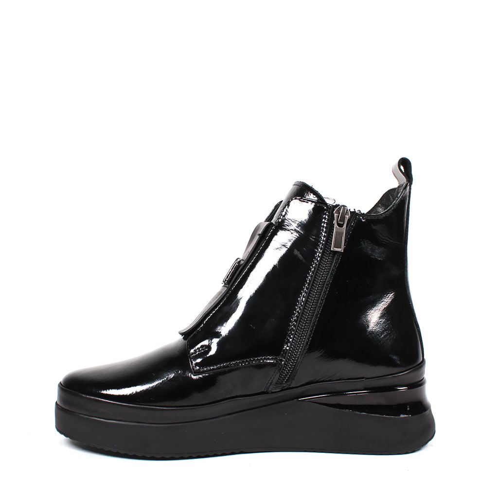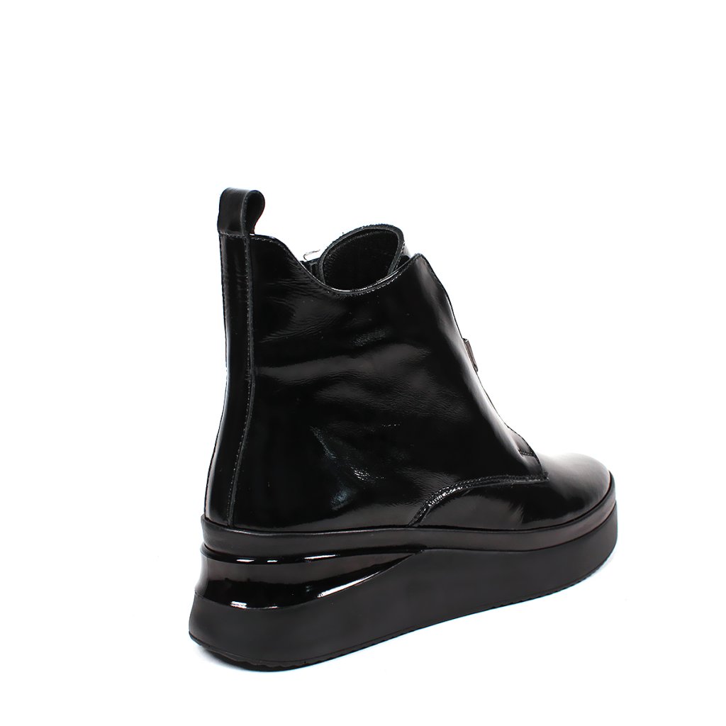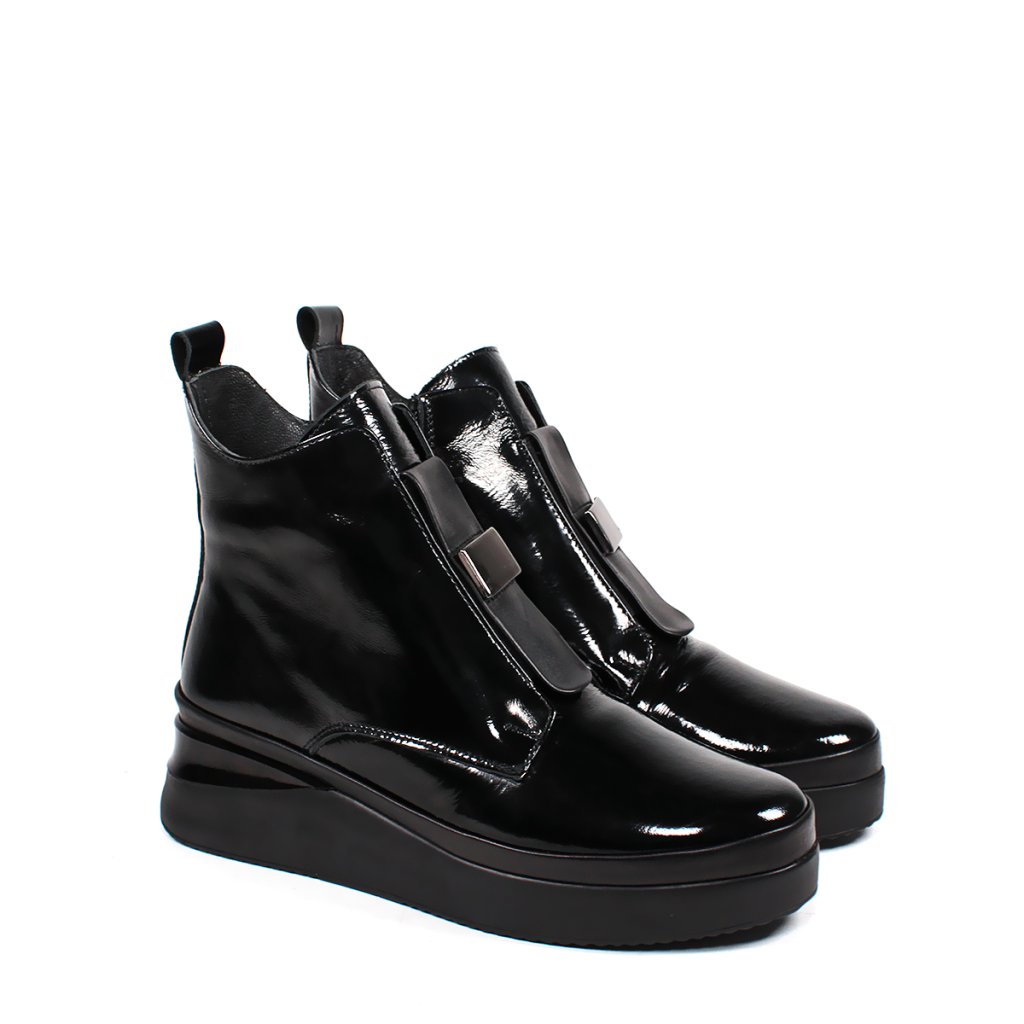 Tieto čierne lakované členkové čižmy Secretshoes sú ideálnym kúskom pre váš jesenný a zimný šatník. Ich lesklý povrch okamžite upúta pozornosť a dodá vášmu outfitu moderný, sofistikovaný vzhľad. S pohodlným 4 cm opätkom si užijete komfort po celý deň, či už idete do práce alebo na večernú prechádzku.