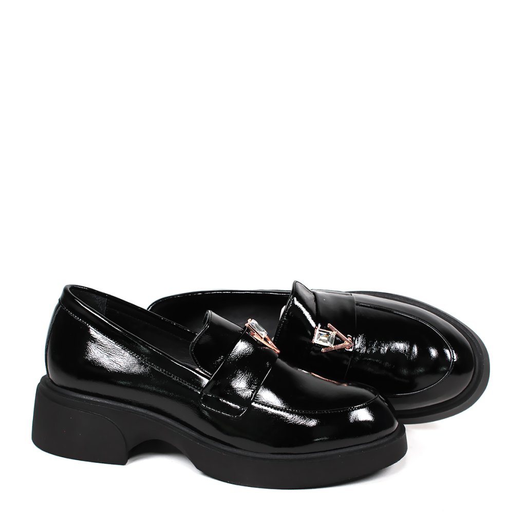 Štýlové a pohodlné poltopánky s dekoráciou - vyrobené z kvalitnej kože, lakovanie dodá šmrnc. Pohodlná hrubá podrážka a kožená stielka zabezpečí komfort.
