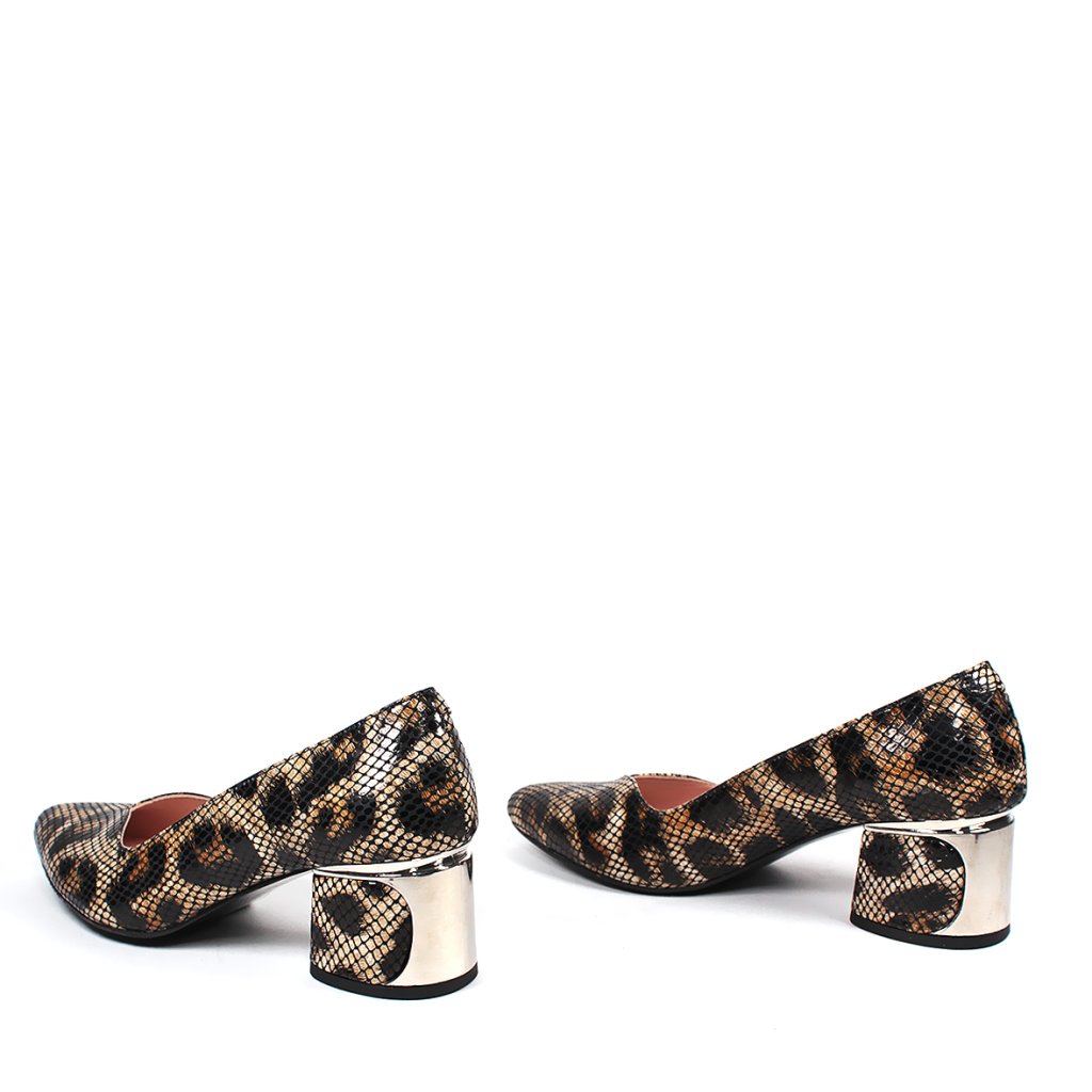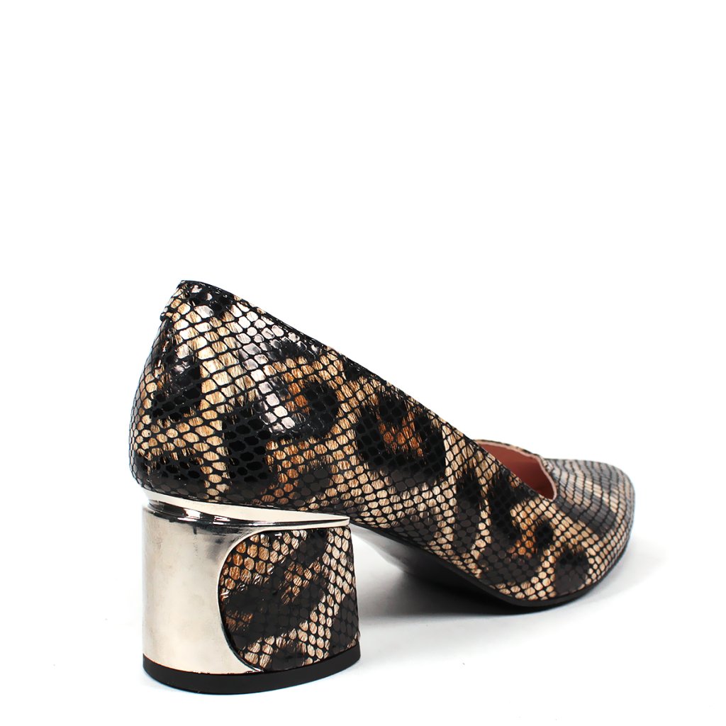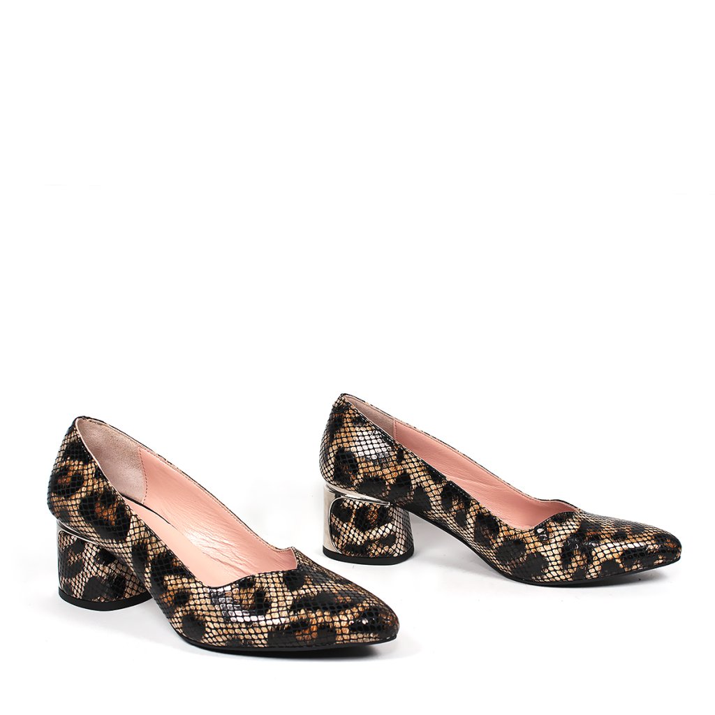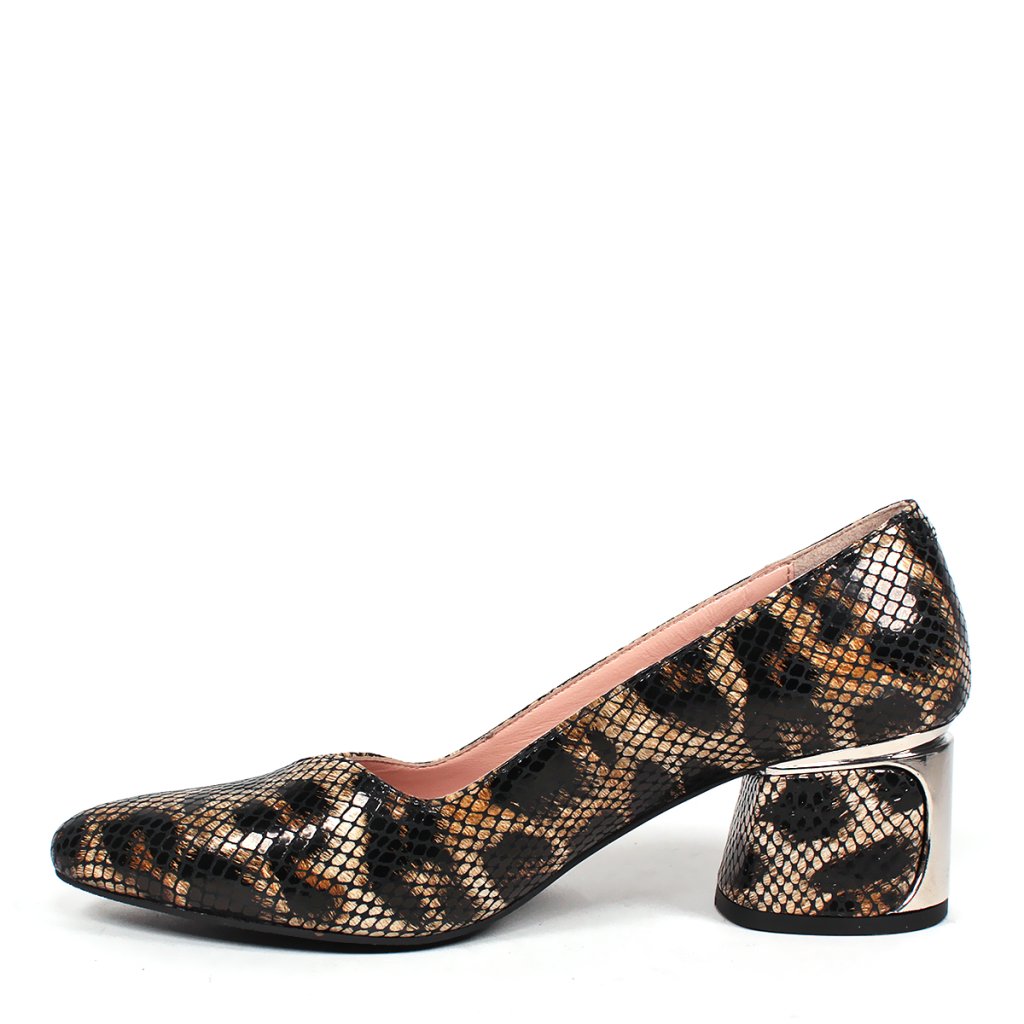Krásne lodičky v štýlovom dizajne z kvalitnej kože , na pohodlnom hrubom 5 cm opätku. Kožená stielka zabezpečí komfort.