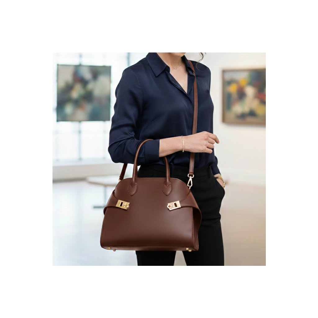 Elegantná kabelka z hladkej prémiovej kože, ktorá v sebe spája špičkové slovenské remeslo a nadčasový štýl. Vďaka pevnému tvaru a čistým líniám je ideálnym doplnkom pre modernú ženu.