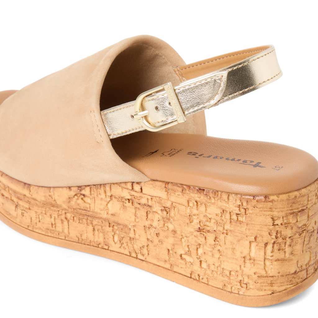 Tieto sandále Tamaris v jemnom béžovom odtieni sú dokonalým príkladom diskrétneho luxusu a všestrannosti. Zvršok je vyrobený z prémiovej pravej kože, ktorá vďaka svojej jemnej textúre a prirodzenej farbe opticky predlžuje nohy a nebadane zapadne do takmer každého letného šatníka. Béžový tón vyžaruje čistotu a eleganciu, vďaka čomu je vynikajúcou voľbou k iždodenným kancelárskym outfitom aj na spoločenské udalosti.