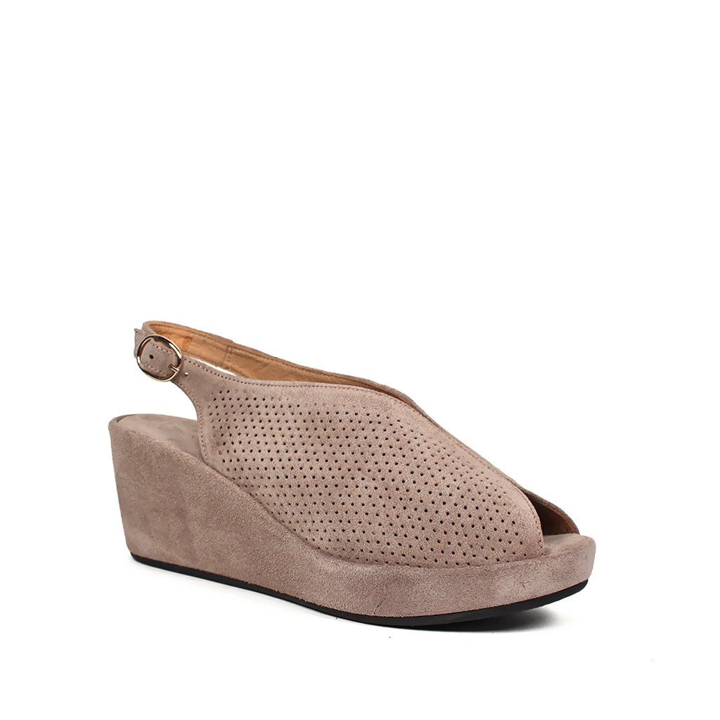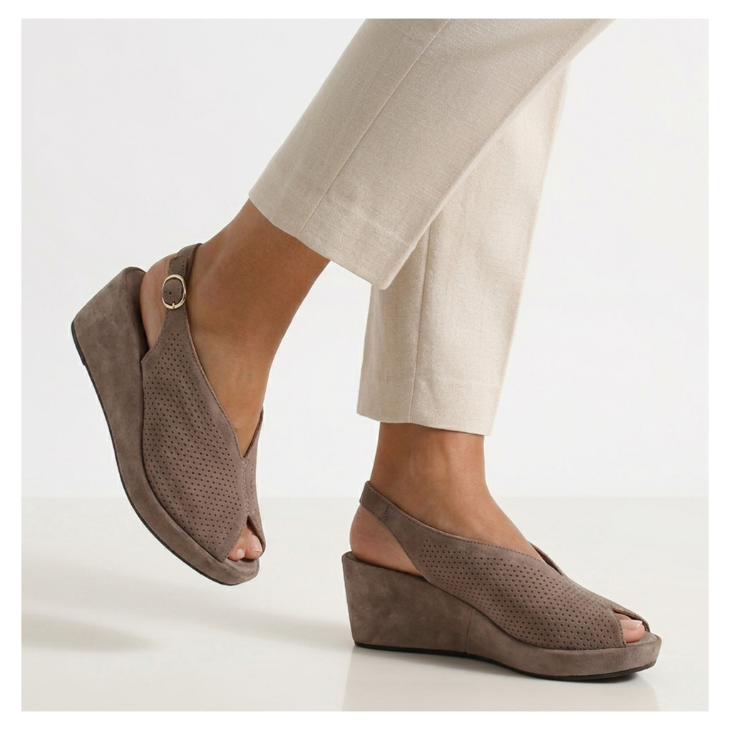 Tieto štýlové sandále Secretshoes v univerzálnej sivej farbe sú vyrobené z kvalitného brúseného semišu a predstavujú vkusný doplnok pre každú príležitosť Jemná perforácia na zvršku dodáva obuvi moderný charakter a zabezpečuje potrebnú vzdušnosť