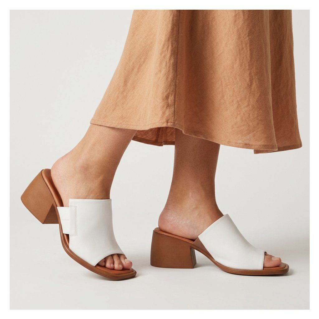 Štýlové kožené šľapky značky Secretshoes v bielom prevedení spájajú eleganciu s pohodlím. Vďaka stabilnému 5,5 cm hrubému podpätku sú ideálnou voľbou na celodenné nosenie.