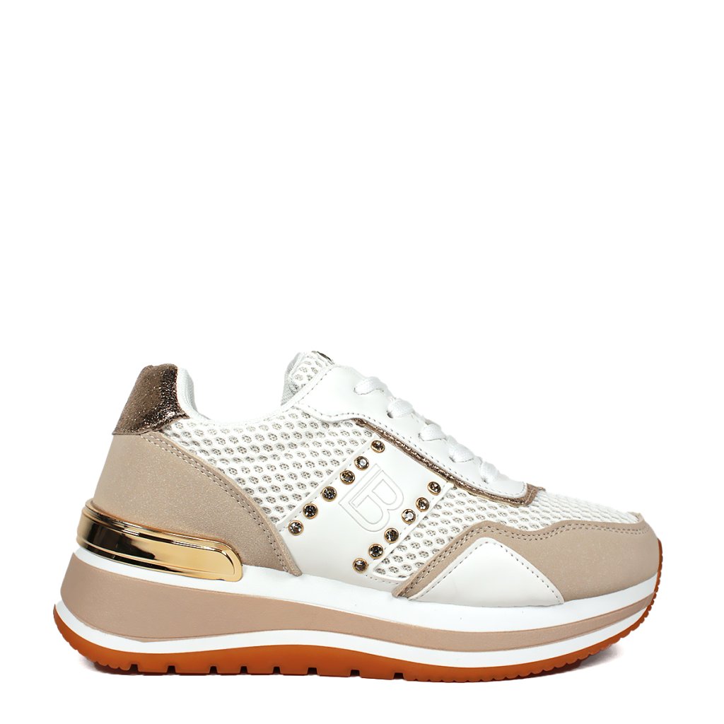 Tieto očarujúce dámske tenisky Laura Biagiotti sú spojením vycibreného štýlu a modernej športovosti, ktoré si vás získajú v dvoch prírodných odtieňoch – elegantnej jemnej béžovej. Zvršok topánky tvorí kombinácia výnimočných textúr: sieťované vložky pretkané trblietavou niťou dopĺňajú matné panely a čisté biele detaily. Skutočný pocit luxusu dodáva bočný pás zdobený žiarivými kamienkami a jemne vyrazeným logom „LB“, zatiaľ čo pozlátený kovový prvok na päte a metalicky lesklé zakončenie dodávajú modelu extra eleganciu. Vrstvená vyvýšená podrážka s drážkovaným dezénom zaisťuje nielen módny vzhľad, ale aj maximálnu stabilitu a pohodlie pri každodennom nosení.
