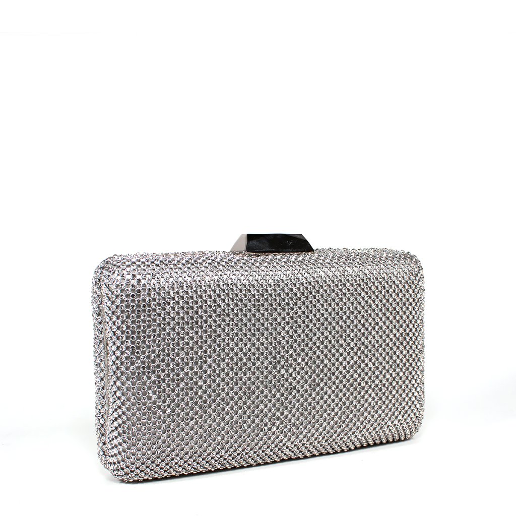 Pozdvihnite svoj slávnostný vzhľad na novú úroveň s touto oslnivou spoločenskov kabelkou v striebornom tóne, ktorá zažiari vo vašich rukách ako skutočný šperk. Celý povrch kabelky je husto pokrytý drobnými trblietavými kamienkami, ktoré za každých svetelných podmienok vyžarujú očarujúci luxus. Čistý, hranatý dizajn dopĺňa elegantný zlatý kovový rám a moderná vrchná spona. Vďaka jemnej zlatej retiazke môžete kabelku pohodlne nosiť aj na ramene, čo z nej robí dokonalého spoločníka na svadby, galavečery alebo akúkoľvek prestížnu udalosť. Tento kompaktný, no pritom výrazný kúsok zaručene postaví svoju nositeľku do centra pozornosti.