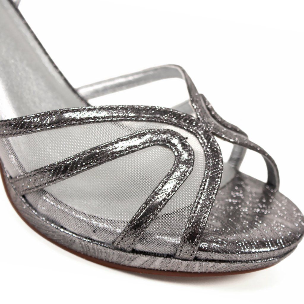 Tieto nádherné strieborné sandále značky Menbur sú dokonalým spojením rafinovanej elegancie a moderného dizajnu, ktorý rozžiari každú výnimočnú udalosť. Výnimočnosť obuvi spočíva v trblietavom remienkovom zvršku kombinovanom s jemnými sieťovanými vsadkami, ktoré pôvabne obopínajú chodidlo a zároveň poskytujú stabilnú oporu. Stabilný podpätok strednej výšky a tenký remienok okolo členka zaručujú pohodlie počas celovečerného nosenia, či už ide o svadbu, ples alebo elegantnú večeru. Metalická trblietavá textúra a zakrivené línie premieňajú túto obuv na skutočný šperk, ktorý skvele doplní akékoľvek spoločenské šaty.