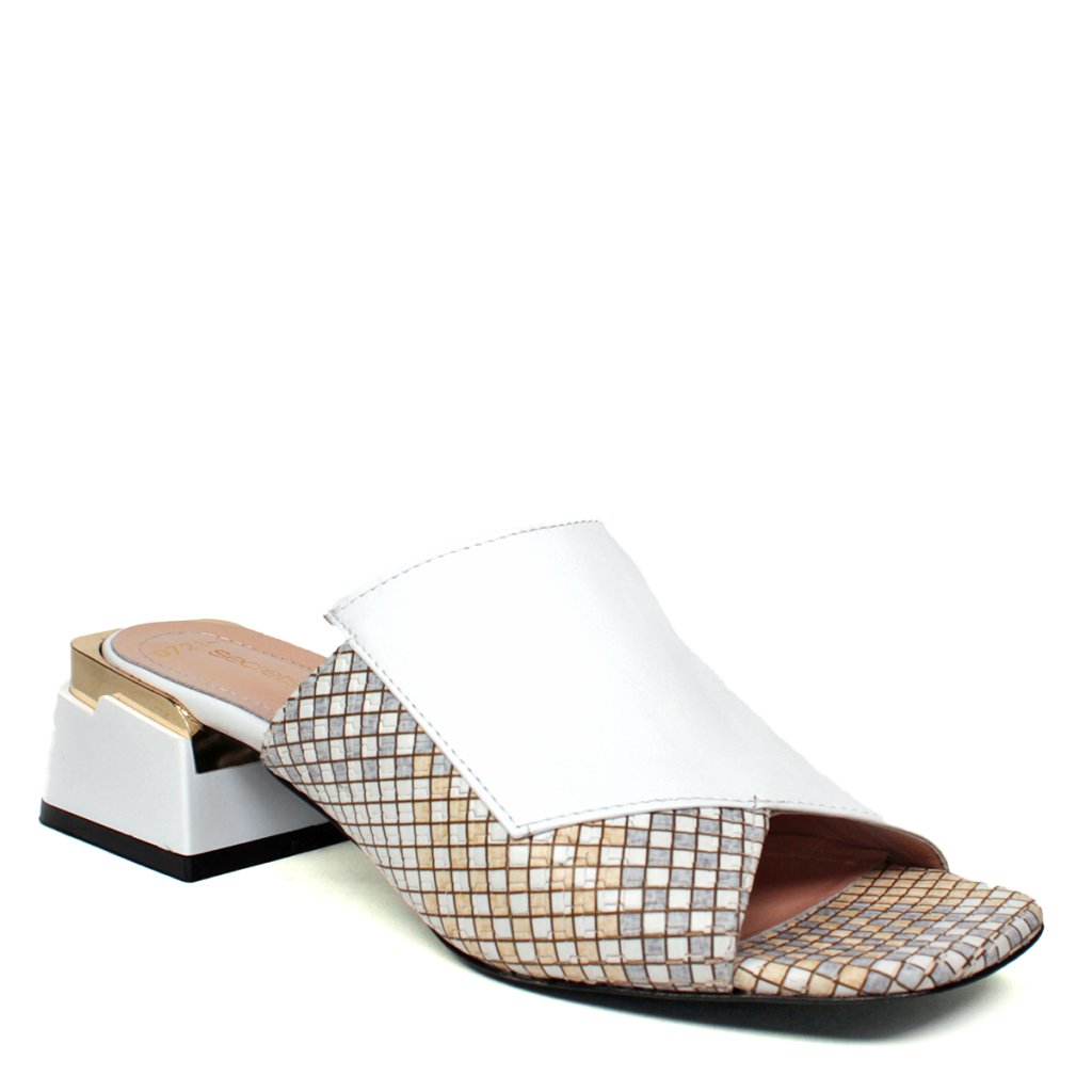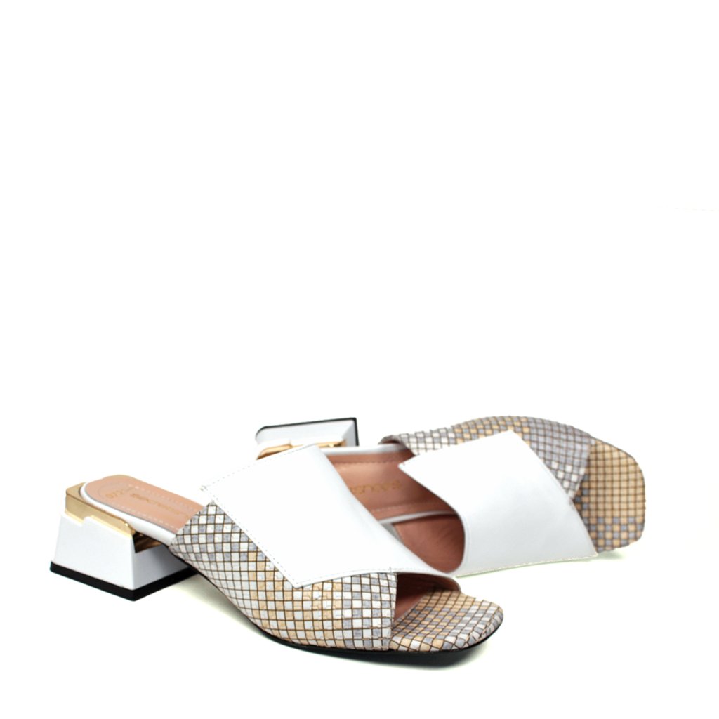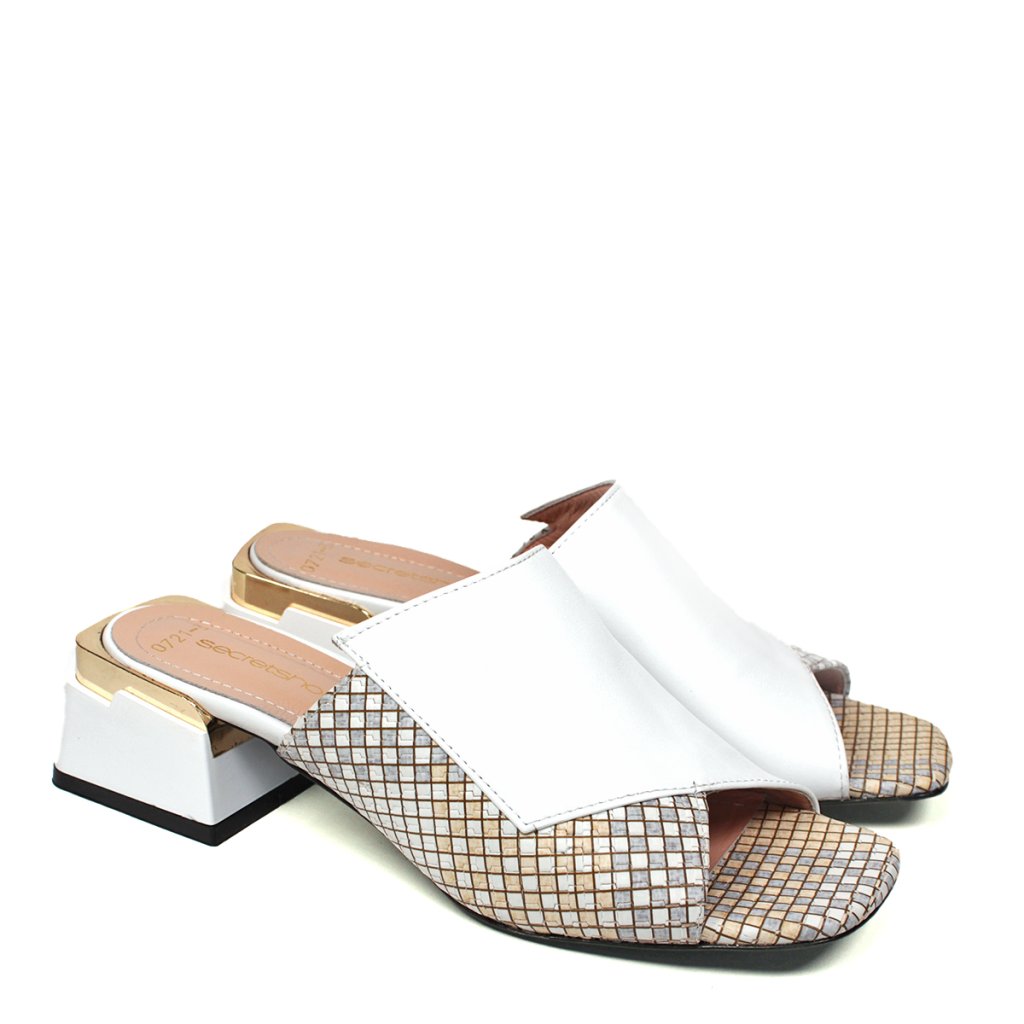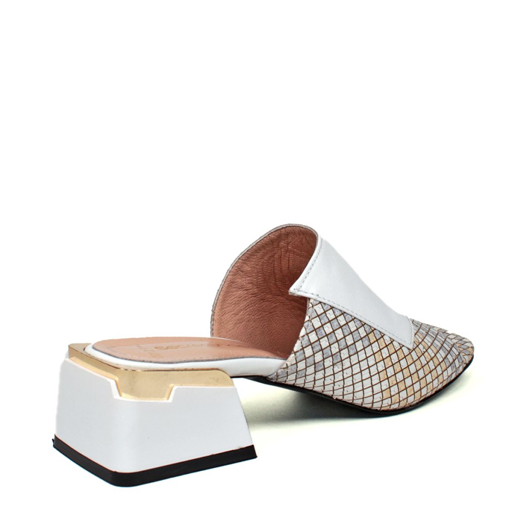 Kožené šľapky na štýlovom hrubom podpätku - ideálne na letné dni.