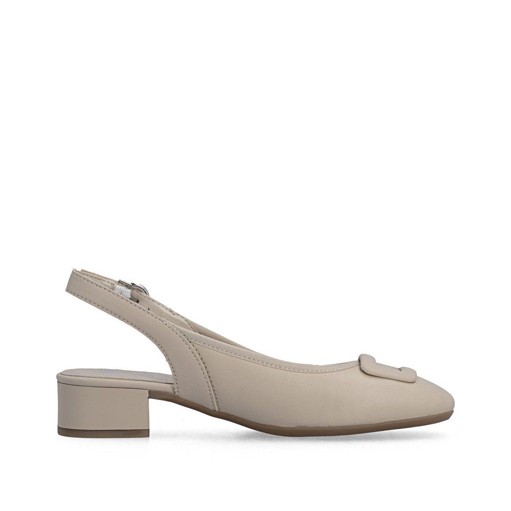 Pohodlná dámska obuv značky RIEKER je to pravé, čo potrebuje každá žena v skrinke na obuv. Hladký zvršok je na priehlavku obohatený veľkou ozdobou. Pásik vedie okolo päty a disponuje sponou, pomocou ktorej si topánku dokonale upravíte podľa potrieb. Nízky a široký podpätok zaručuje stabilitu pri chôdzi a dodáva modelu ženský, ale zároveň praktický charakter. Štýlový pár, ktorý podčiarkne každý outfit s maximálnou jednoduchosťou a vkusom.
